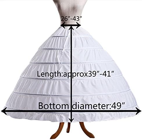 【مقاس التنورة الداخلية من القرينول】: طول التنورة بالكامل حوالي 100 ± 5 سم. الحد الأقصى لقطر الدائرة هو 124 سم / 49 بوصة. خصر التنورة الداخلية المرنة من القرينولين هو 66-95 سم / 26-39.3 بوصة، مناسب لفستان الحفلة بمقاسات أمريكية من 2 إلى 17.