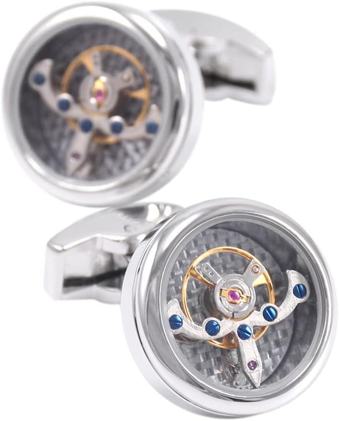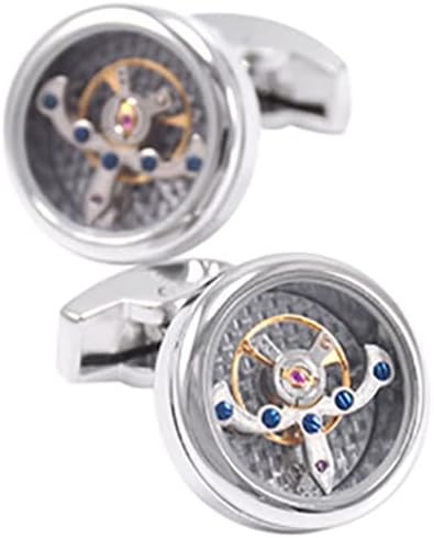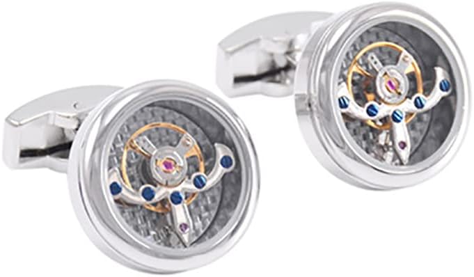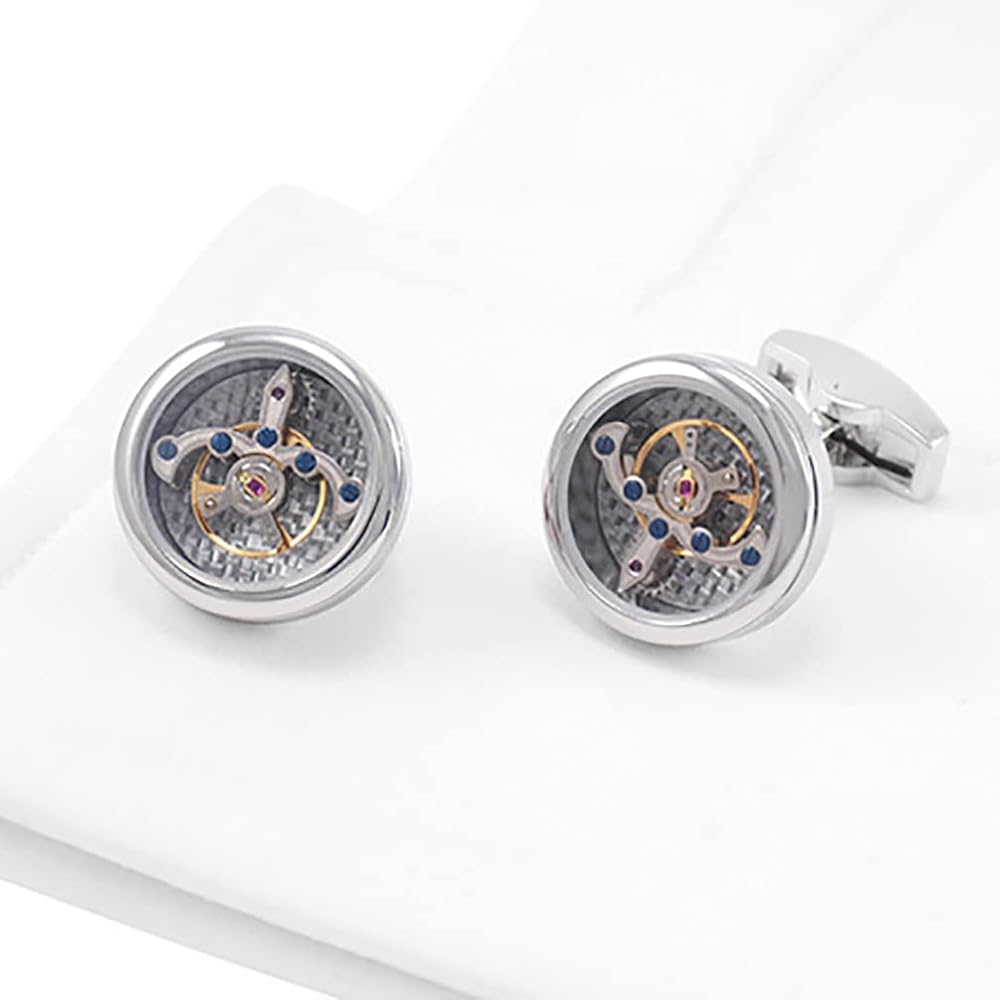 أزرار أكمام فاخرة من ألياف الكربون توربيون بطراز عتيق (فضي)، أزرار أكمام ميكانيكية عمل حركية للرجال للمجوهرات/الزفاف / هدية مع صندوق عرض فاخر, Small, نحاس أصفر, بدون أحجار كريمة