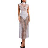 فستان نسائي مثير من الدانتيل الشفاف شفاف من خلال الشرابة اللامعة