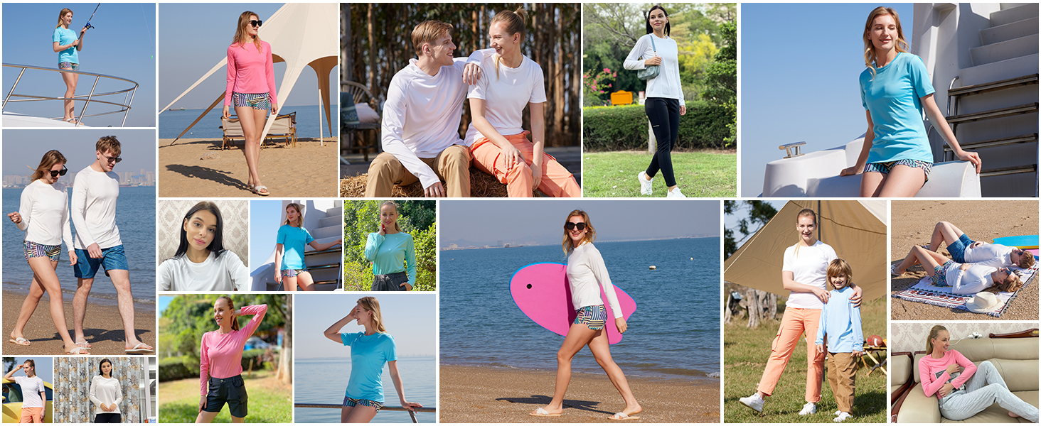 Our Women's spf sun shirts are made with UPF 50+ fabrication, provide excellent protection against harmful ultraviolet rays, and the soft, breathable material feels amazing next to your skin while staying light and cool to the touch, great for a day of water sports, fishing, hiking, golf, traveling, running, workout.