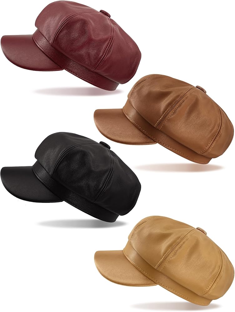 Package includes:you will receive 4 pieces PU leather newsboy hats for women, available in 4 different colors,beige,khaki, red and black, adequate to meet your wearing, matching and replacing needs in daily life.
