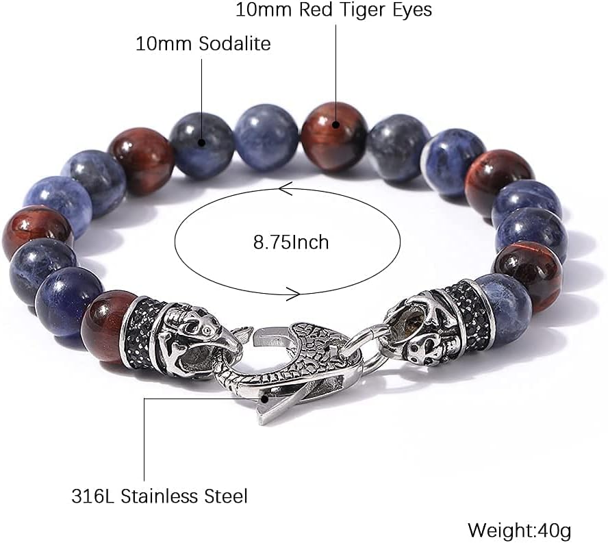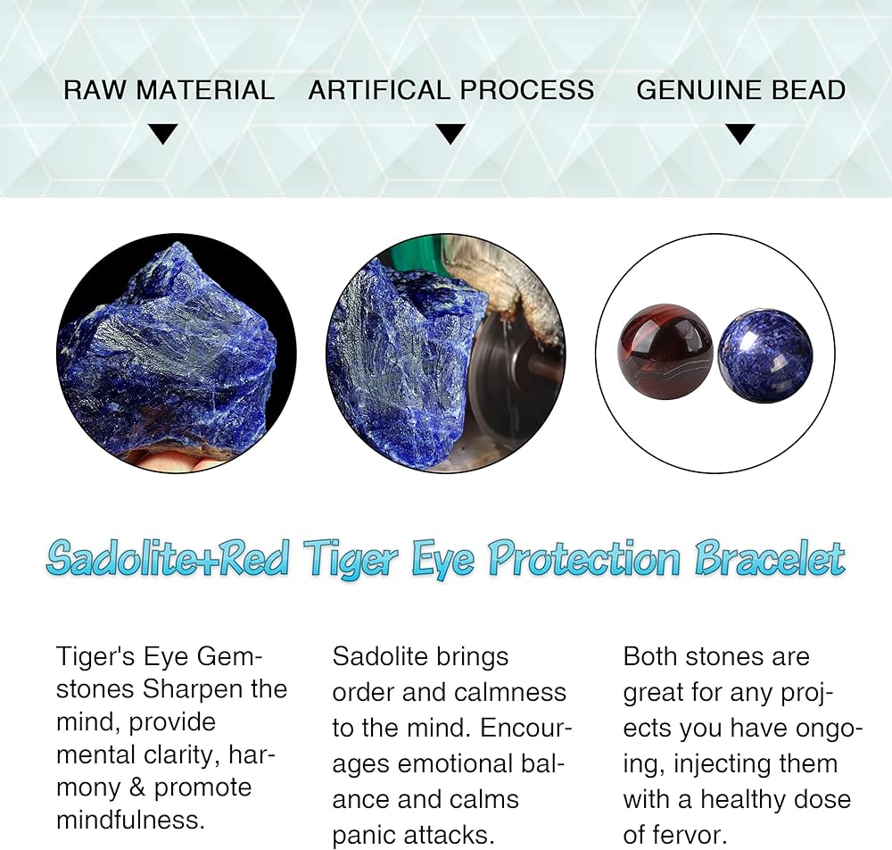 سوار كريستال علاجي للرجال - سوار عين النمر الطبيعي مع السادوليت مصمم لتخفيف التوتر والتأمل واليوغا وتوزيع الزيوت العطرية وتوفير الطاقة.