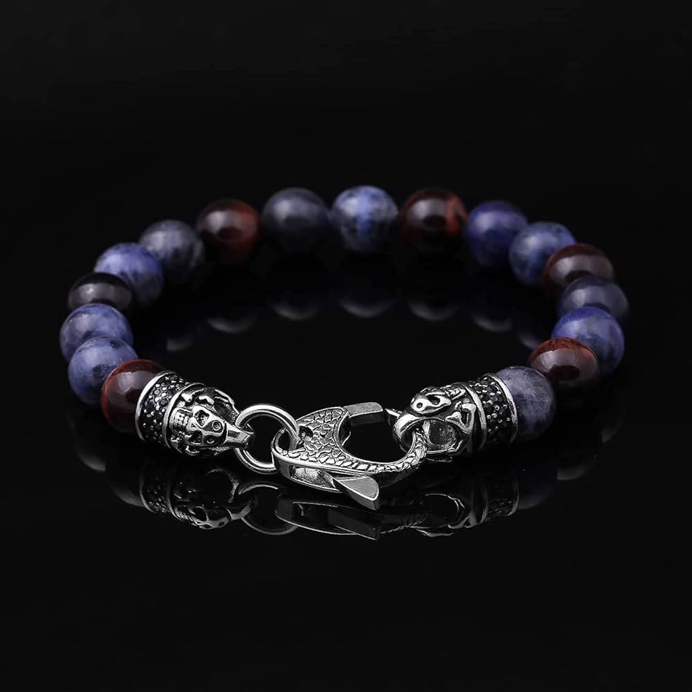 سوار خرز رجالي عالي الجودة - مصنوع من الأحجار الكريمة الطبيعية مقاس 10 ملم وتركيبات ومشبك من الستانلس ستيل الجراحي، لدعم الاستخدام طويل الأمد ومناسب للرجال في المناسبات المختلفة.