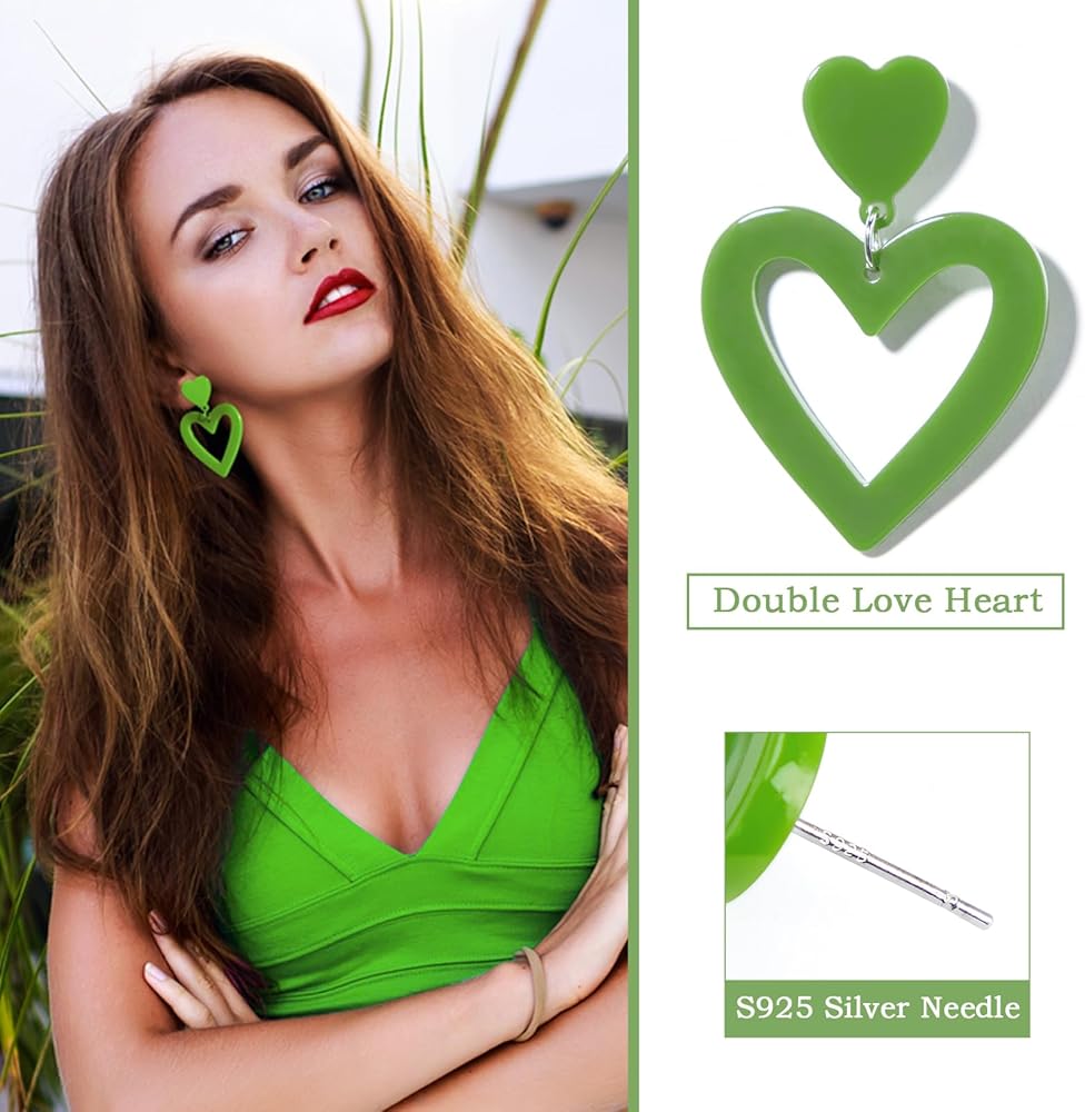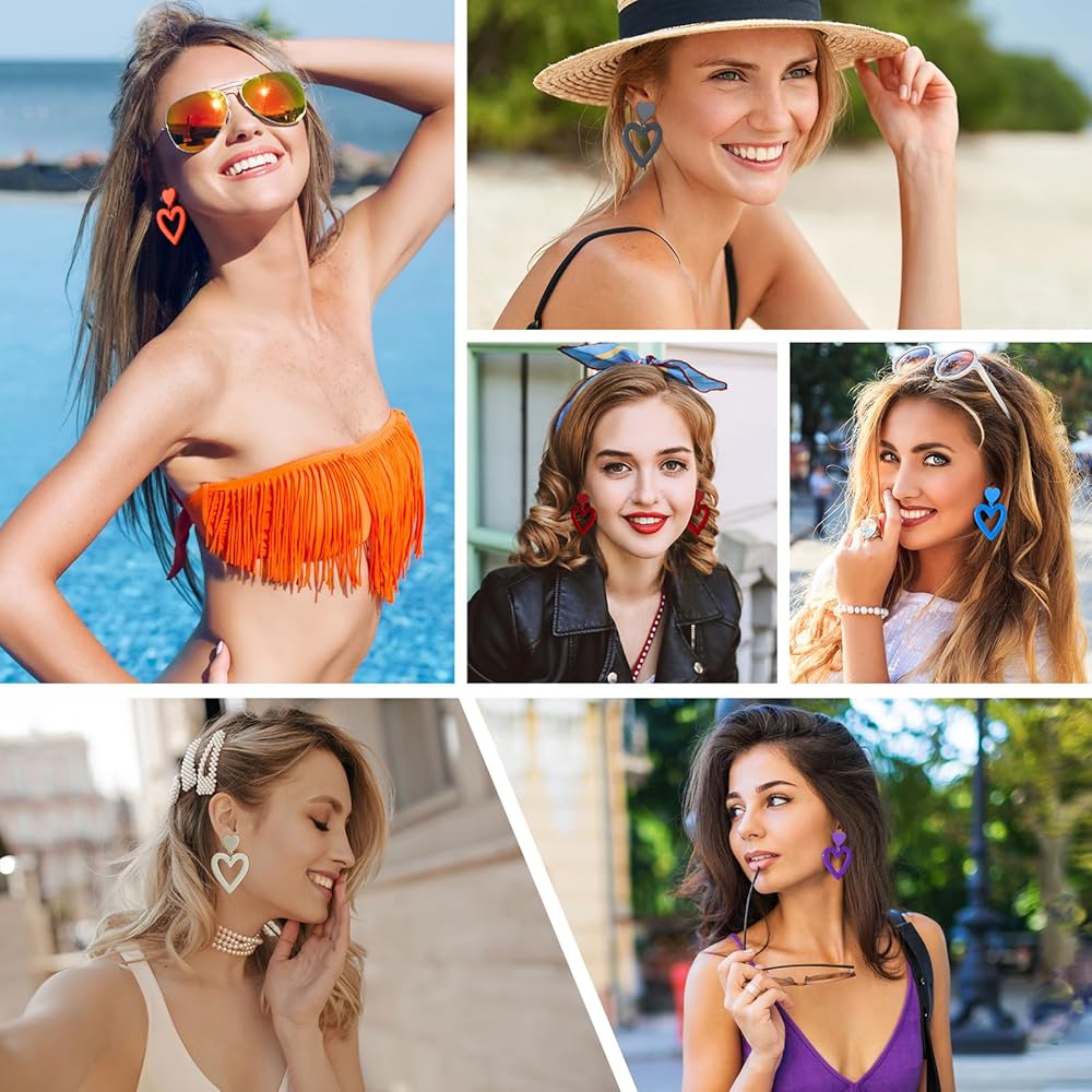 • أقراط على شكل قلب جميل: ألوان Y2K لتتناسب مع جميع أنواع الملابس، والملابس، والفساتين، وما إلى ذلك. الأقراط المتدلية على شكل قلب لطيفة مثالية للحفلات، والحفلات الموسيقية، وحفلات الثمانينات، والحفلات التنكرية، وعيد الحب، وعيد الأم، والعام الجديد، وما إلى ذلك.