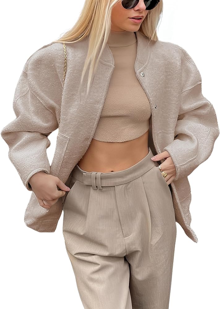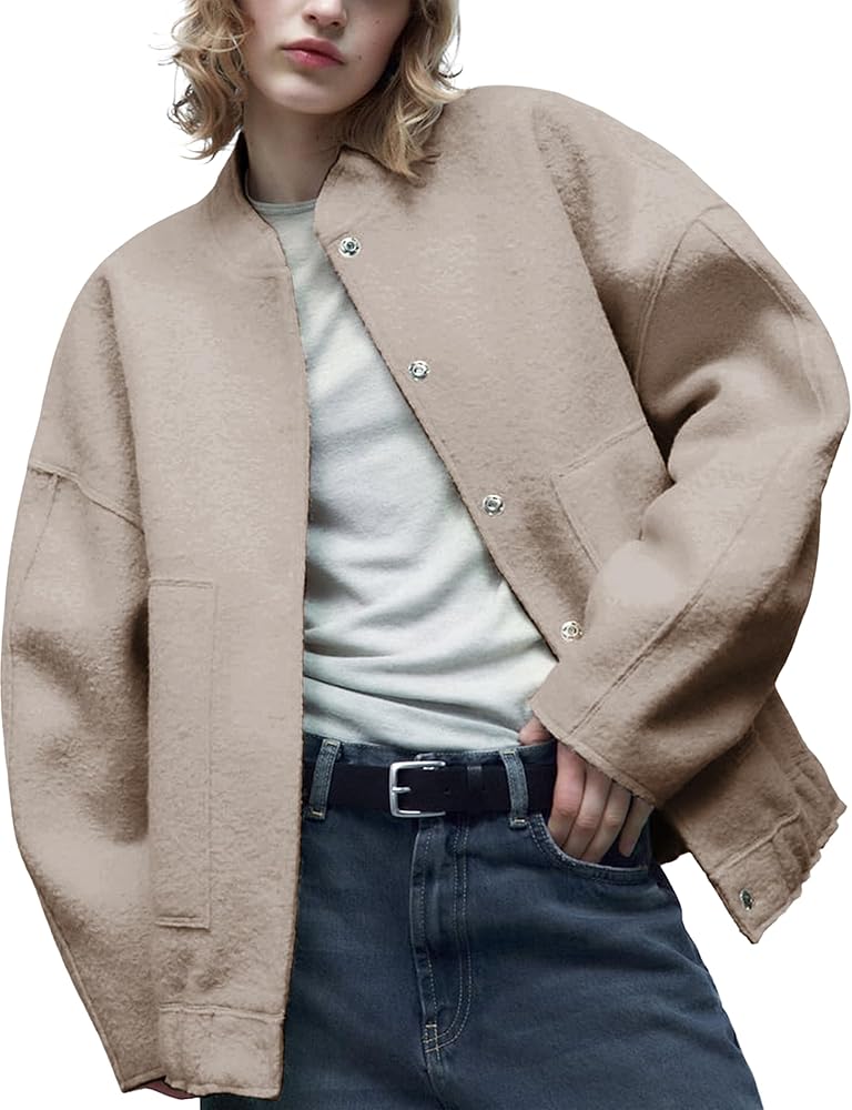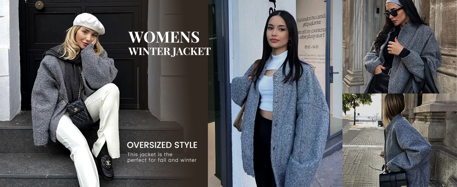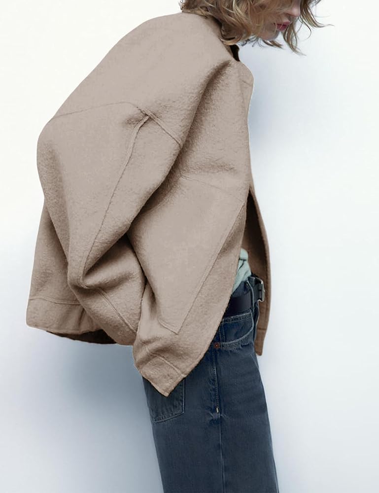 سترات نسائية كبيرة الحجم مصنوعة من مزيج الصوف مع جيبين أماميين
