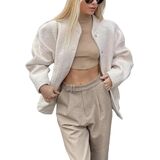 جاكيت بومبر للسيدات مصنوع من قماش عالي الجودة، دافئ ومريح في الارتداء