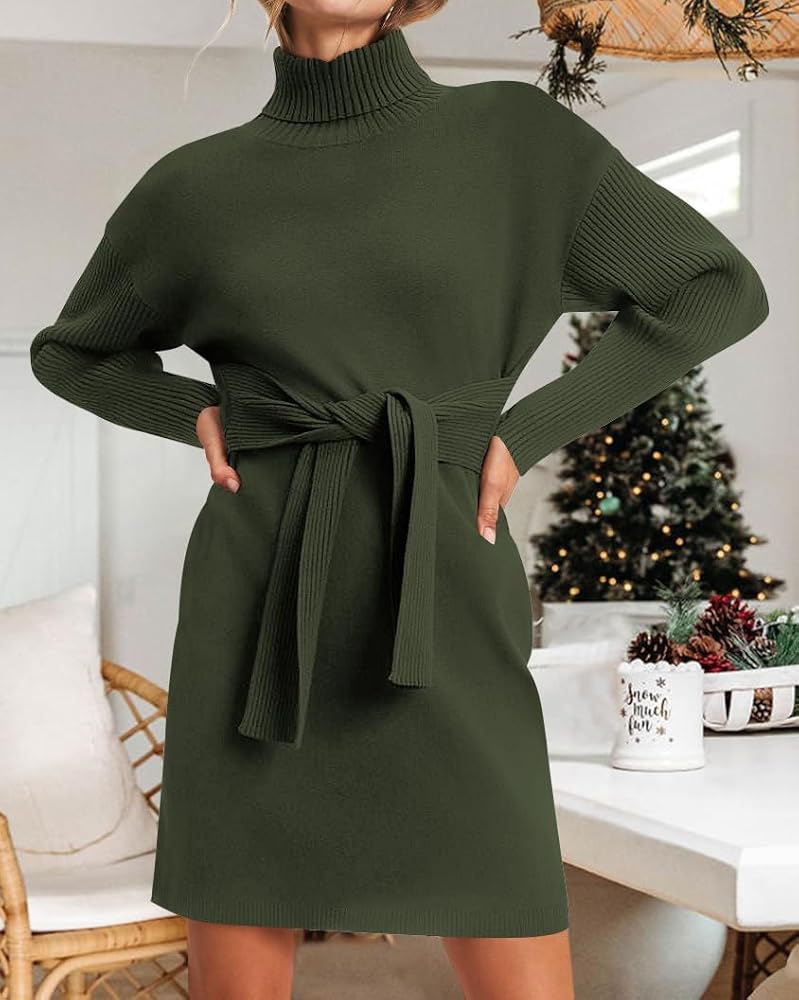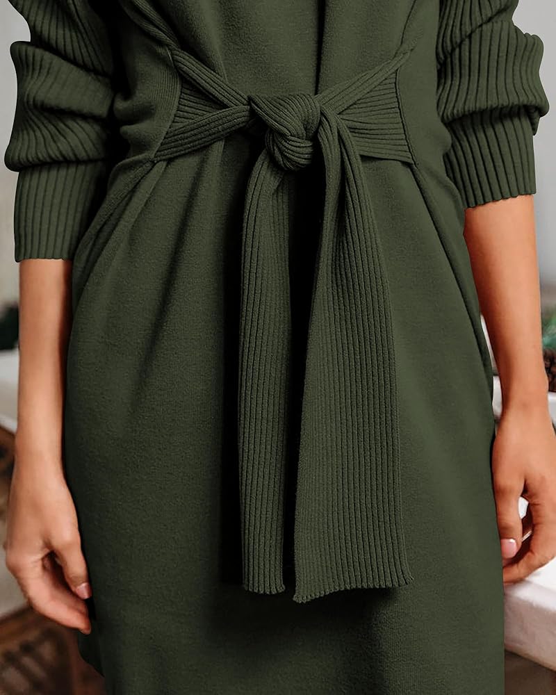 تصميم أنيق --- تصميم ذو ياقة مدورة وأكتاف منسدلة وأكمام طويلة يبقيك دافئًا خلال الأشهر الباردة، بينما تضيف الأصفاد المضلعة العمودية لمسة من التفرد والاهتمام البصري إلى الفساتين القصيرة الأنيقة للسيدات. تصميم ربطة الخصر يمكن أن يبرز شكلك، مما يسمح لك بتعديل المقاس حسب تفضيلاتك
