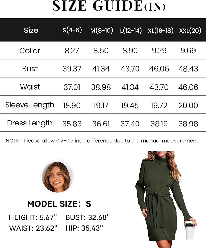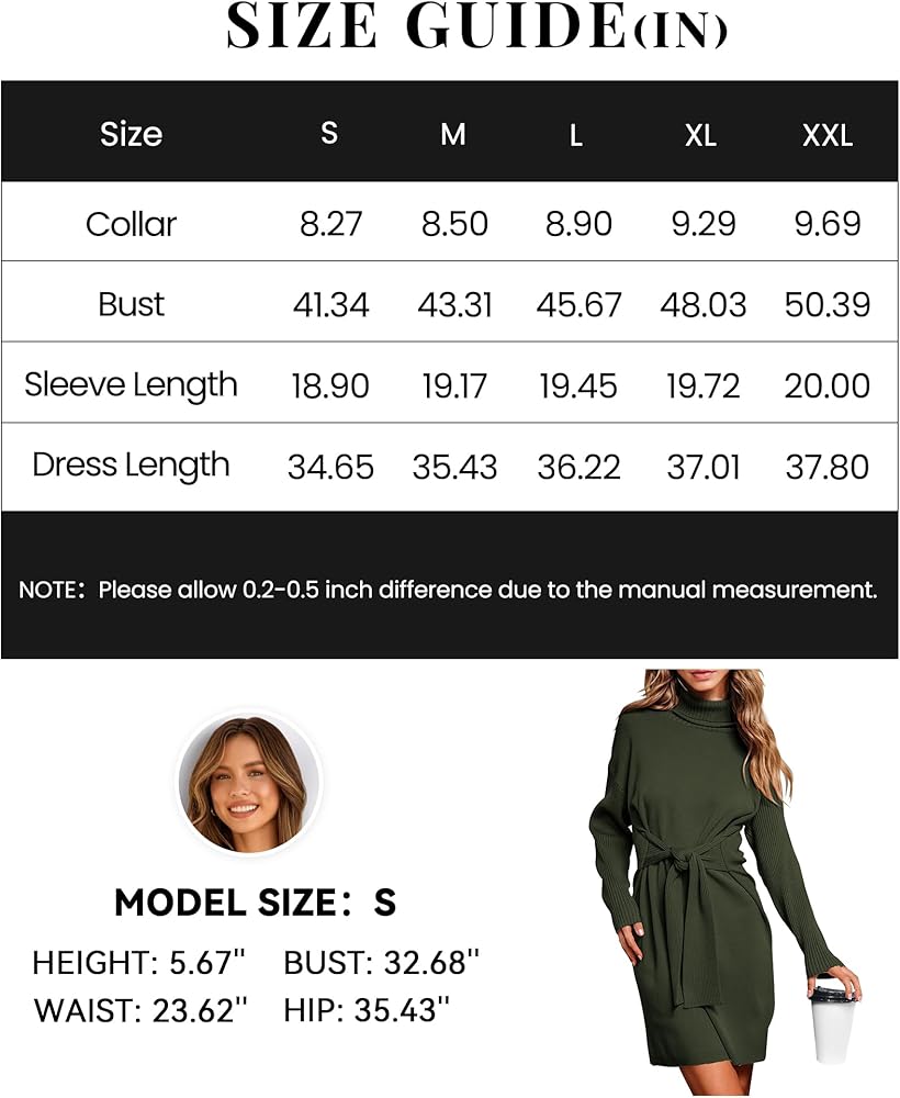 نصائح---S=الولايات المتحدة 4-6، M=الولايات المتحدة 8-10، L=الولايات المتحدة 12-14، XL=الولايات المتحدة 16 مميزات الموضة---فستان سترة بأكمام طويلة للنساء لخريف وشتاء 2023 / فستان سترة بياقة مدورة / فستان بأكمام طويلة للنساء / سترة متماسكة مضلعة للنساء / كنزة صوفية للنساء / فستان سترة بخصر ثابت للنساء / طول فوق الركبة / رقبة عالية فستان سترة سميك / سترات دافئة فضفاضة / سترة لطيفة للنساء / فستان سترة تونيك للنساء / كتف منسدل فستان سترة / سترة طويلة لارتدائها مع يغطي الرجل