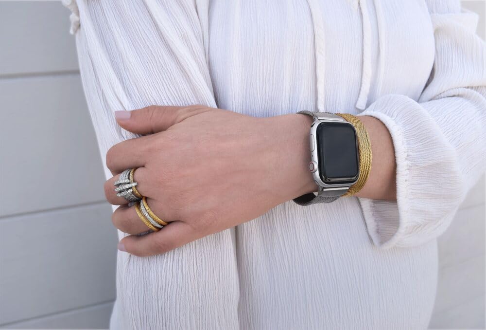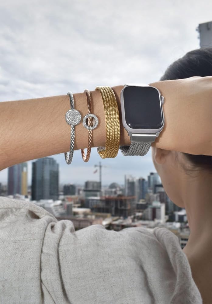 سهل الارتداء: توفر ALOR سوارًا مميزًا يسهل ارتداؤه وخلعه، ويتميز بتصميم مفتوح من الخلف لمزيد من الراحة. ما عليك سوى وضعها على معصميك، ثم انطلق. يحاكي شكل الكفة الشكل الطبيعي لمعصمك لتوفير الراحة، كما أن الكابل الأيقوني المصنوع من الفولاذ المقاوم للصدأ مرن بما يكفي للانزلاق على المعصم ولكنه قوي بما يكفي للحفاظ على شكله.