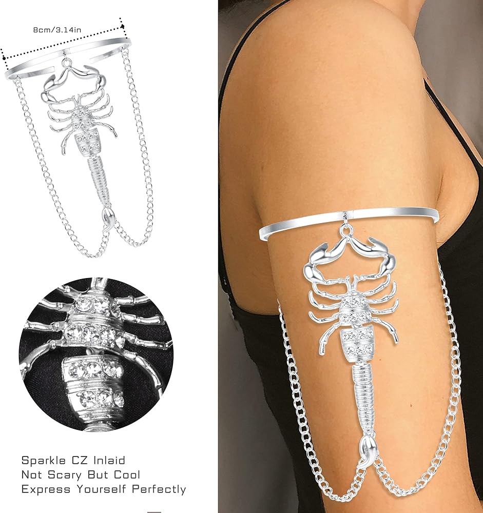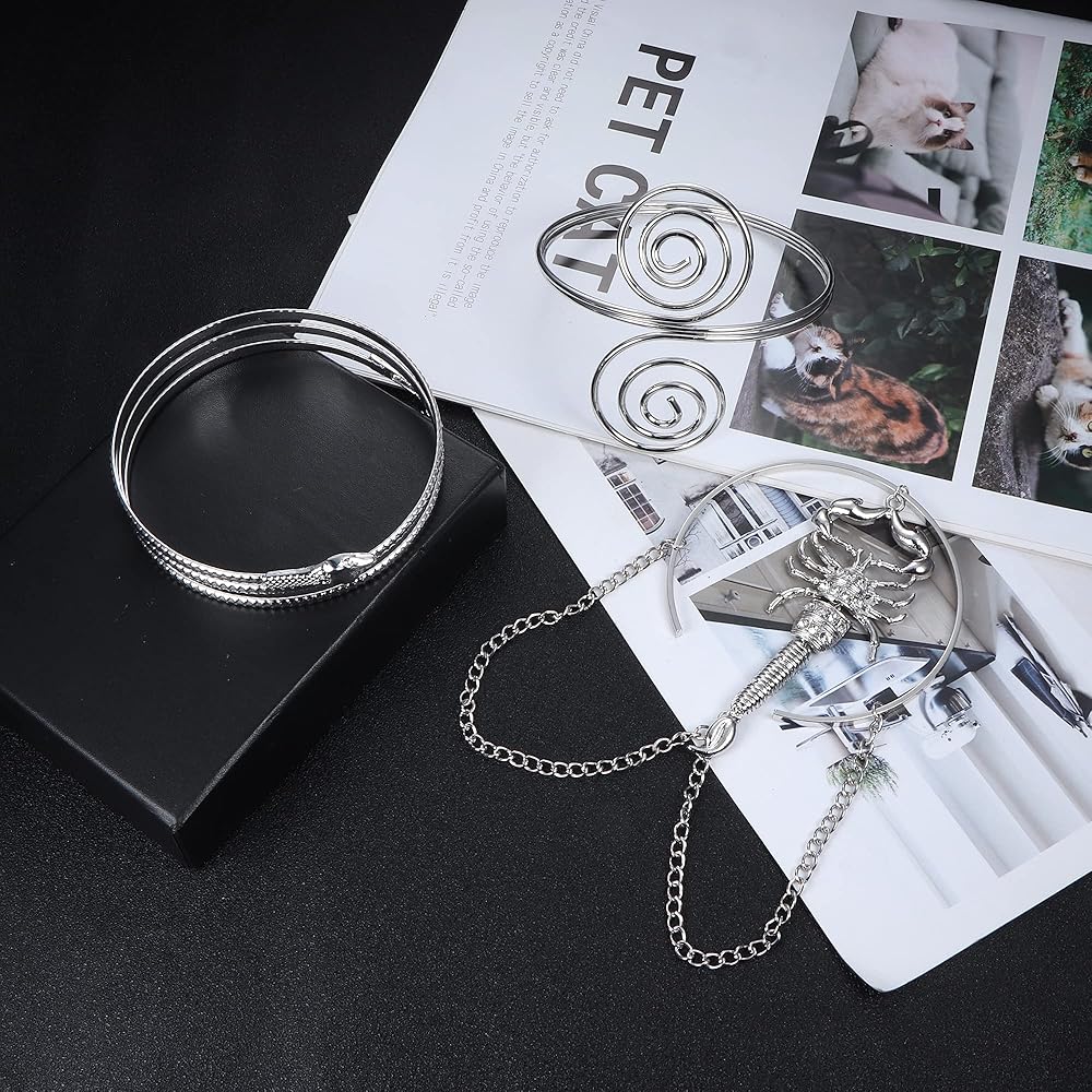 【مجوهرات أساور ذراع قابلة للتعديل】--حجم المجوهرات التنكرية لأساور الذراع لدينا يبلغ حوالي 8 سم (3.2 بوصة) القطر الداخلي، سهل التعديل، مناسب لمعظم النساء. تصميم الدوامة والعقرب صغير بما يكفي ليكون لطيفًا وكبيرًا بما يكفي ليلفت الانتباه. مما يتيح لك تجربة المزيد من الموضة.