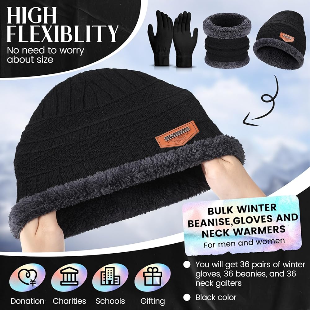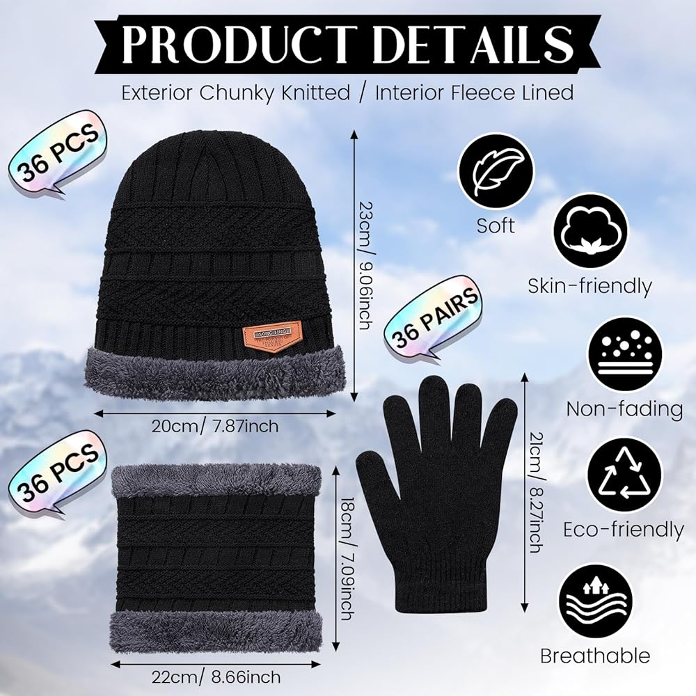 حزمة قيمة: سوف تحصل على حزمة شتوية كبيرة للجنسين، بما في ذلك 36 قبعة شتوية، و36 قفازات شتوية تعمل باللمس، و36 قطعة تدفئة للرقبة في الشتاء؛ الكمية كافية، والتركيبة كاملة، مما يوفر لك وقت شراء كل منتج على حدة، ويلبي احتياجات الاستخدام المتنوعة، كما أنه هدية لطيفة للآخرين