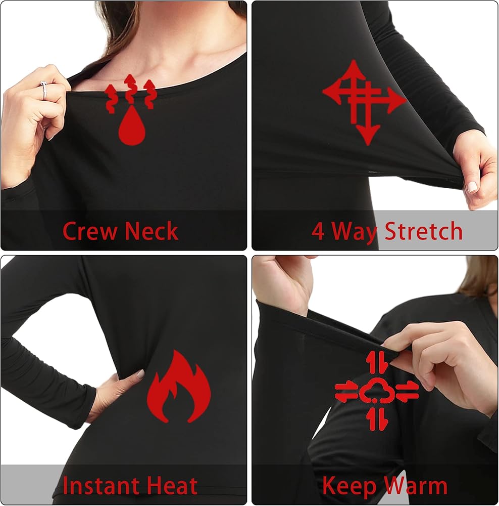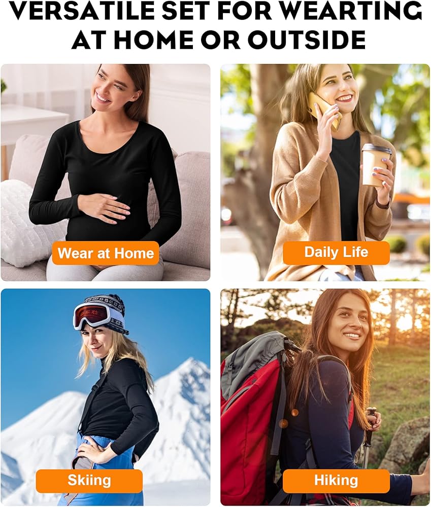 【امتصاص الحرارة】تمتص ألياف التسخين مجموعة كاملة من الحرارة والعلم والتكنولوجيا والتدفئة والجلد الدافئ. يمكن للجزء العلوي من الملابس الداخلية الحرارية أن يسخن وفقًا للبيئة ويحافظ على الجلد عند درجة حرارة ثابتة تبلغ 36.5 درجة مئوية/97.7 درجة فهرنهايت.
