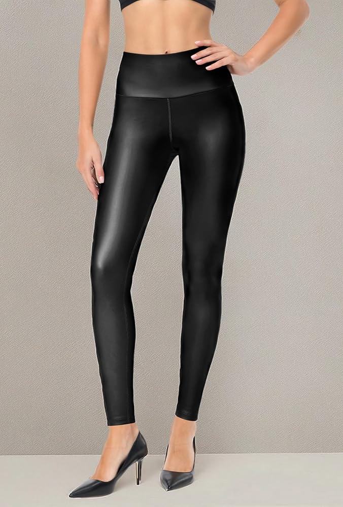 سراويل جلدية سوداء بمتانة فائقة - السراويل الضيقة النسائية من الجلد الصناعي مصنوعة من نسيج جلد البولي يوريثان الناعم القابل للتمدد في 4 اتجاهات. سوف تحب السراويل المصنوعة من الجلد الصناعي بمجرد ارتدائها وتجربة مزيج مثالي من النعومة والتمدد.