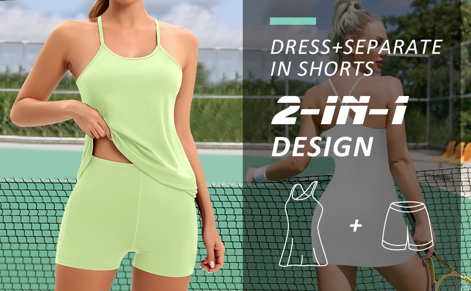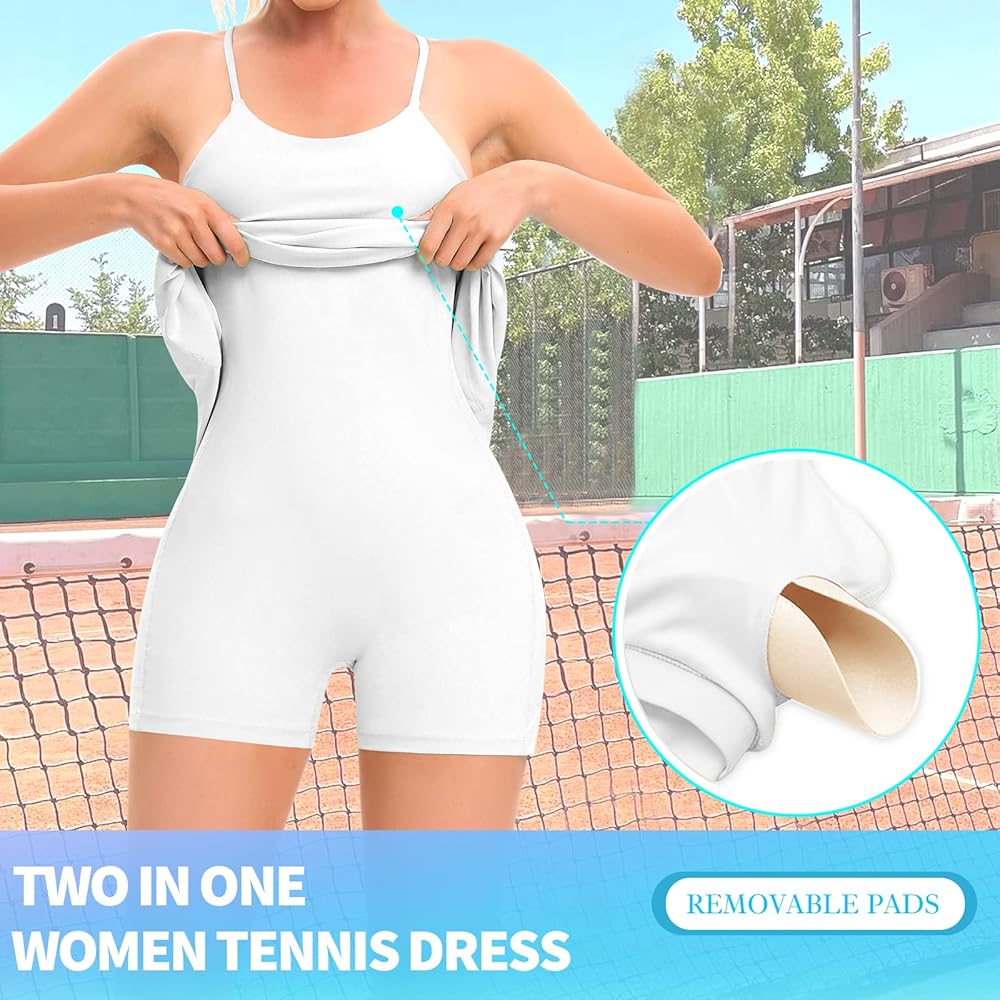 فستان تنس للنساء، فساتين للتمرين مع شورت مدمج مع جيوب