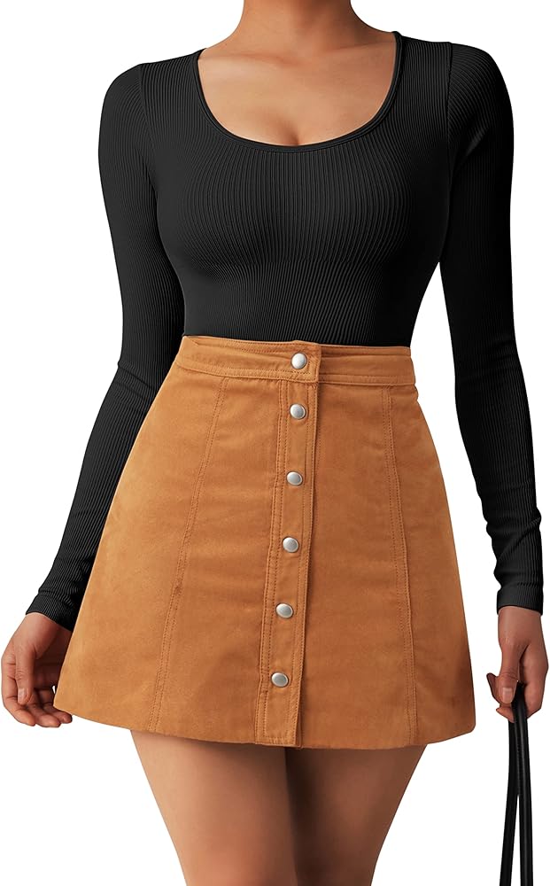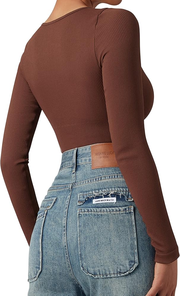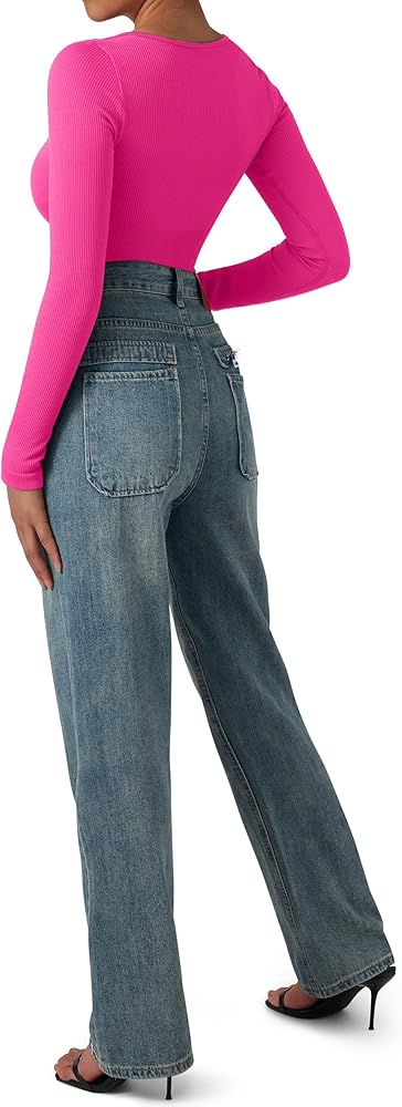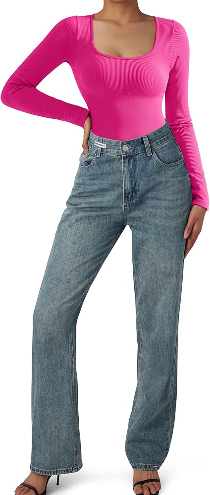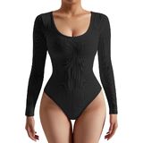 • بدلة تنحيف مضلعة بدون خياطة: كم طويل، خط عنق واسع