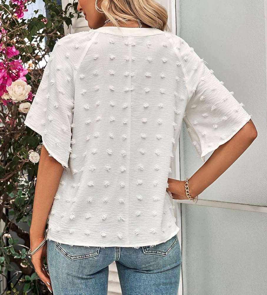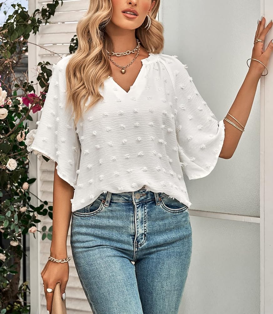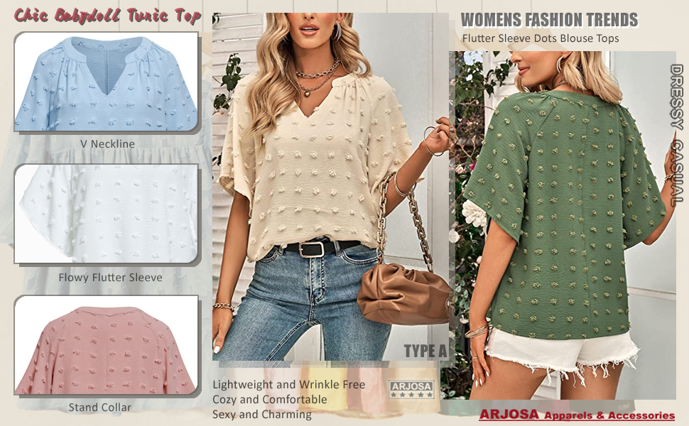 السمات: بلوزات بأكمام مرفرفة غريبة مع نمط نقاط أنيقة مزخرفة، طراز مريح وفضفاض، متعدد الاستخدامات ومريح، خاص وخارج عن المألوف، يجعلك تبدو نحيفًا وجذابًا وساحرًا عند ارتداء هذه البلوزات الرائعة