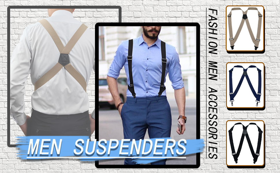 ألوان متعددة: تحتوي الحمالات الجانبية للرجال على شكلين مختلفين (خطاف دوار ومشبك بلاستيكي محمول) مع 3 ألوان (أسود، كحلي، بيج). يمكنك دائمًا العثور على ما يناسب ملابسك.