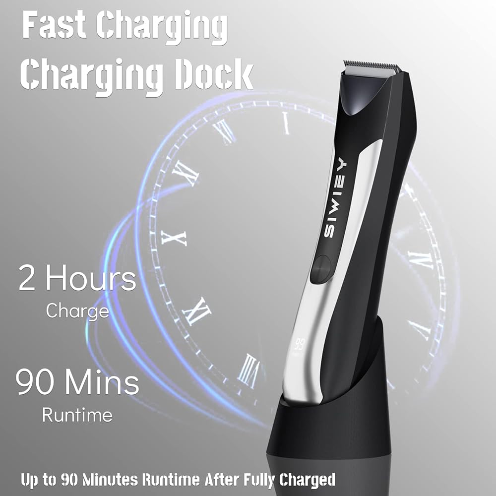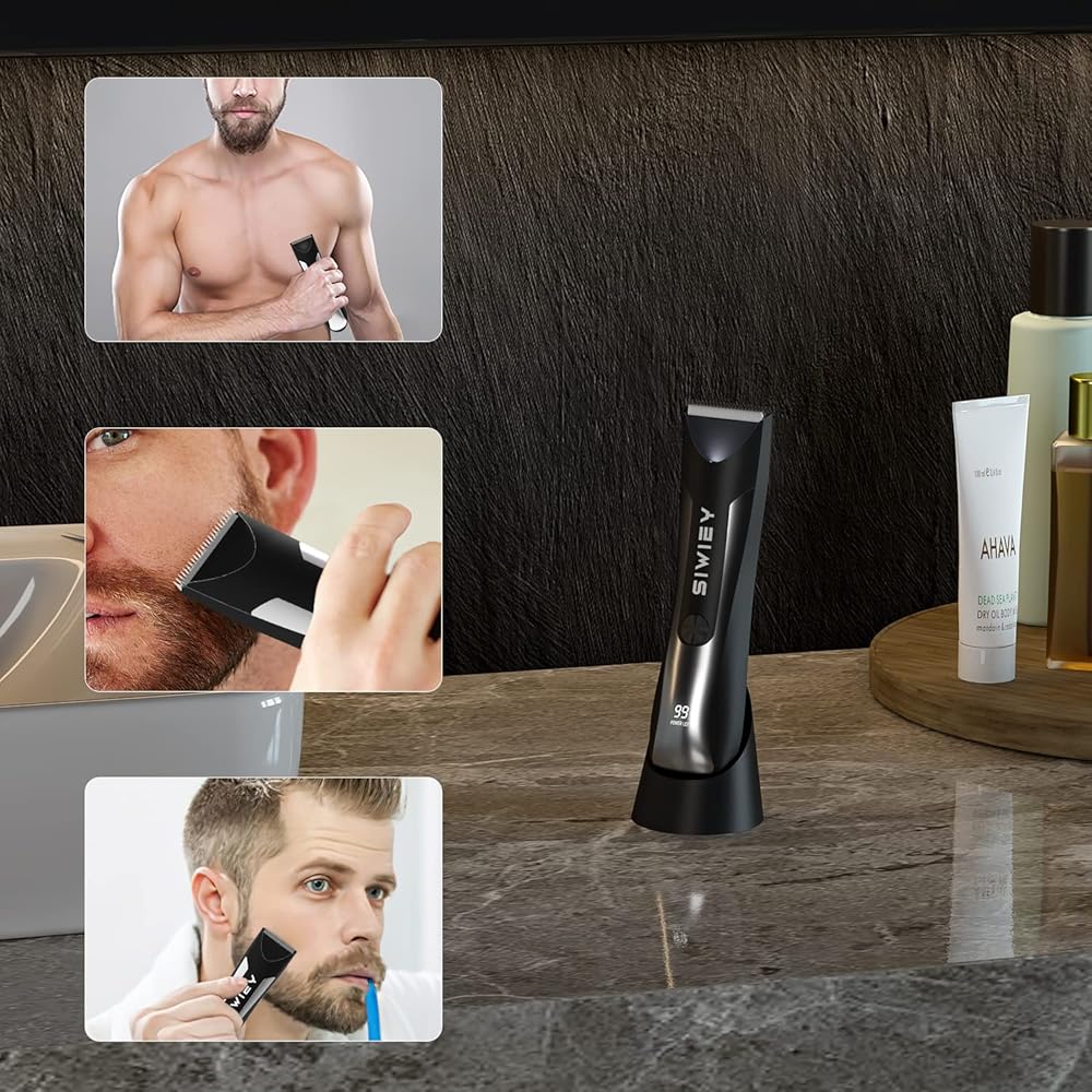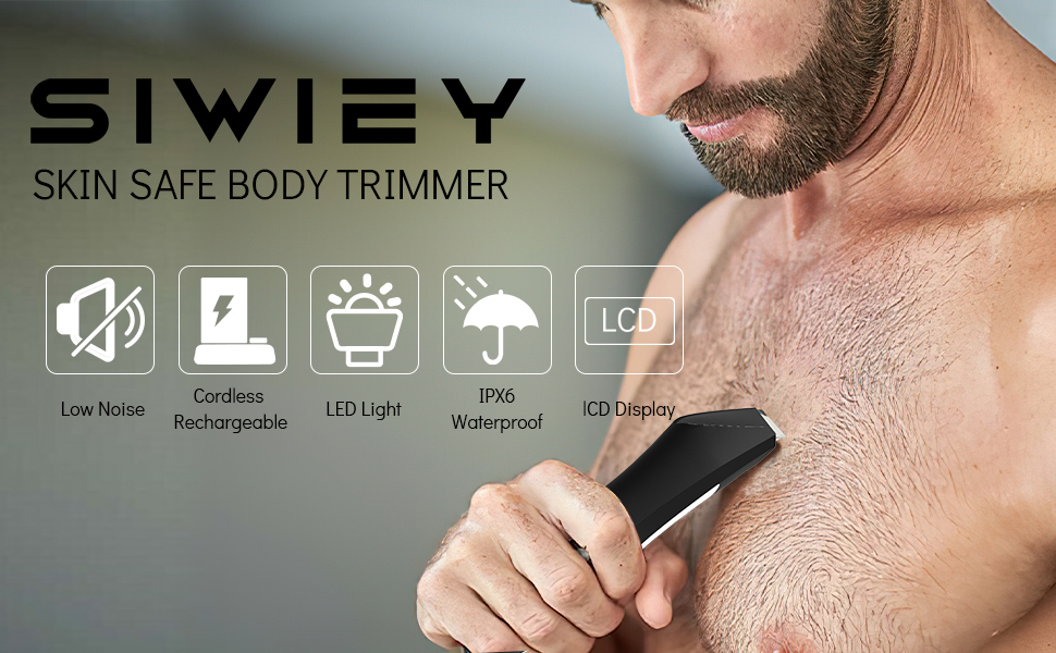 ماكينة تشذيب شعر الجسم للرجال، ماكينة حلاقة الوجه الكهربائية الرطبة / الجافة من SIWIEY مع ضوء LED، مقاومة للماء IPX6، شاشة LCD، ماكينة حلاقة صحية، قاعدة شحن