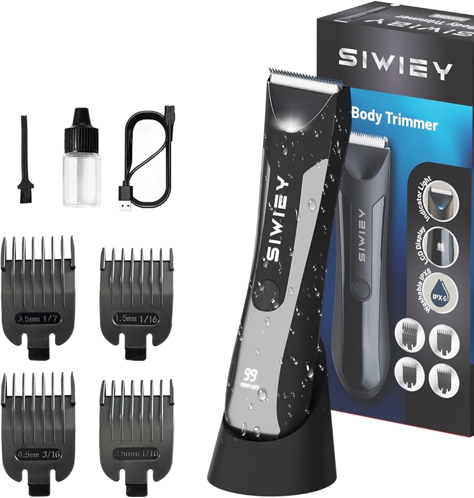 What Included - SIWIEY mens body hair trimmer includes 1 cordless body trimmer, 4 Guide Combs (1.5/2.5/3.5/4.5mm), 1 Charging Base, 1 trimmer Oil, 1 Cleaning Brush, 1 USB Cable, and 1 Manual. SIWIEY offers a 1-year warranty, please buy it in confidence.