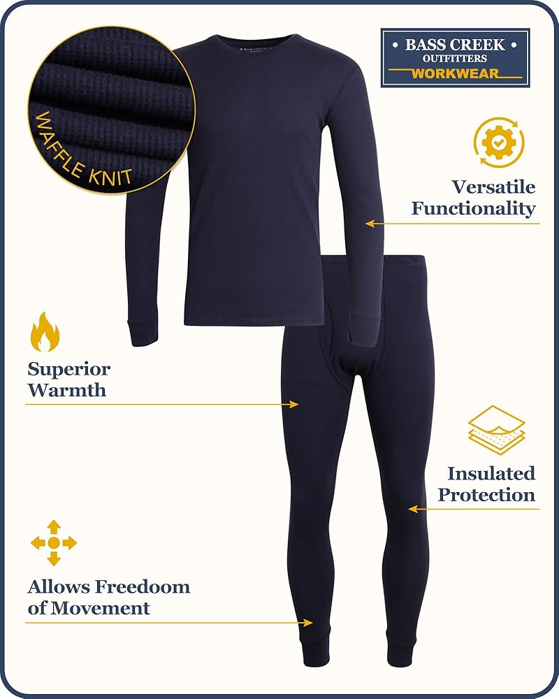 ملابس BASS CREEK مرخصة رسميًا: مجموعة ملابس داخلية حرارية بطبقة أساسية من نسيج الوافل للرجال؛ معدات خارجية دافئة ومتينة وأصيلة