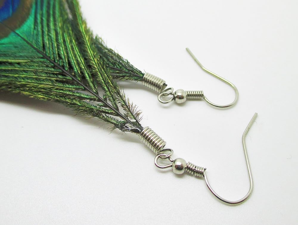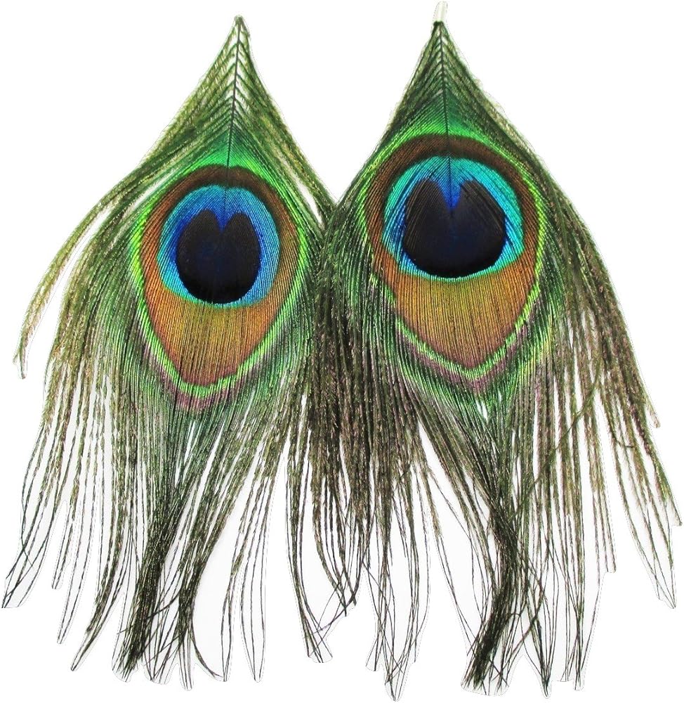 أقراط ريش الطاووس الحقيقي - جديد - زوج!