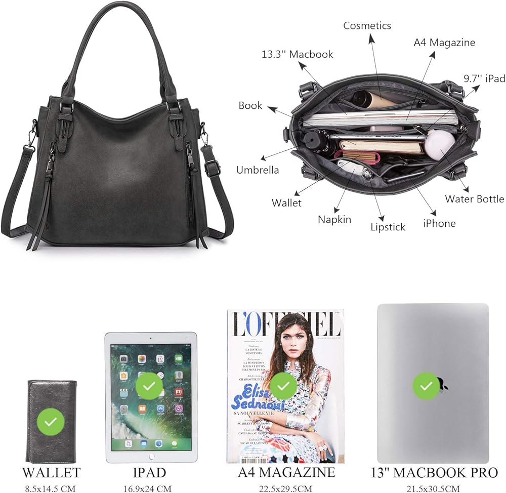 • 💛【حجم متوسط】: 12.4 بوصة × 4.73 بوصة × 11 بوصة (الطول × العرض × الارتفاع)، الوزن: حوالي 1.6 رطل، يأتي مع حزام حبال (يتراوح من 25.98 بوصة إلى 48.03 بوصة) ومقبض قصير (7.9 بوصة)، واسعة بما فيه الكفاية للضروريات اليومية، يمكن أن تملأ هاتفك الخلوي، والكمبيوتر المحمول مقاس 13.3 بوصة، وأجهزة iPad مقاس 9.7 بوصة، والمحفظة، والنظارات الشمسية، وغيرها في المحافظ الجلدية وحقائب اليد النسائية.