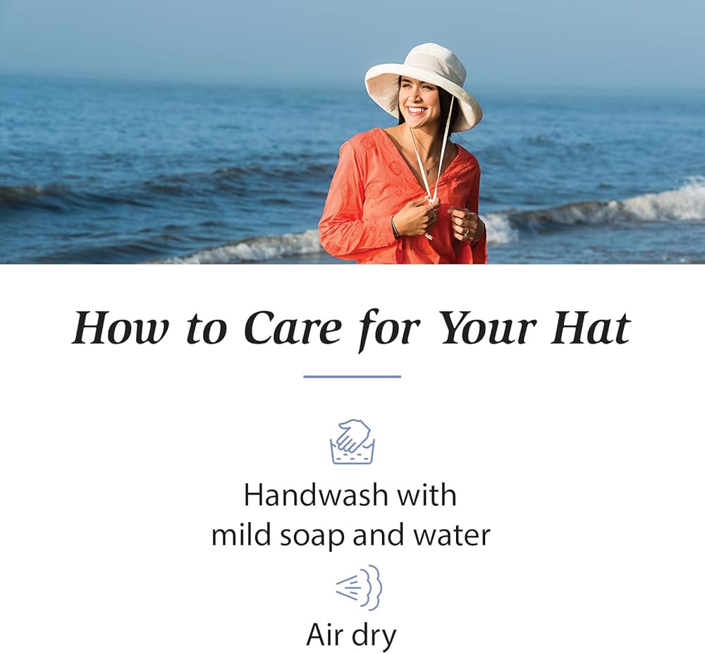 قم بحماية قبعة الشمس الساحلية الخاصة بك: يتميز Wallaroo's Seaside بتصميم متين. نوصي بغسل قبعتك يدويًا بالماء البارد بصابون لطيف لإزالة أي بقايا أو أوساخ أو أوساخ بأمان. جفف شاطئ البحر الخاص بك بالهواء عن طريق حشو التاج بقطعة قماش جافة للحفاظ على شكل التاج، ثم قم بحافته حتى يجف تمامًا. إذا فقدت قبعتك شكلها قليلًا، قم ببخارها عند الضرورة. لا تستخدم مجفف الشعر لتسريع عملية التجفيف. يمكن سحق شاطئ البحر متعدد الاستخدامات للتعبئة في مغامرة السفر الخاصة بك.