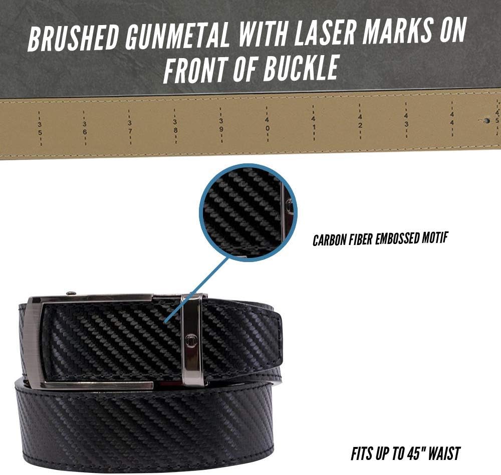 حزام جولف أسود من Nexbelt Vetica Carbon Ratchet مع إبزيم من النيكل المصقول, أسود كربون, One Size
