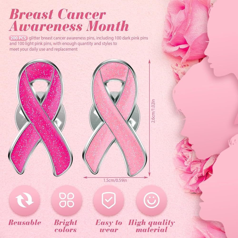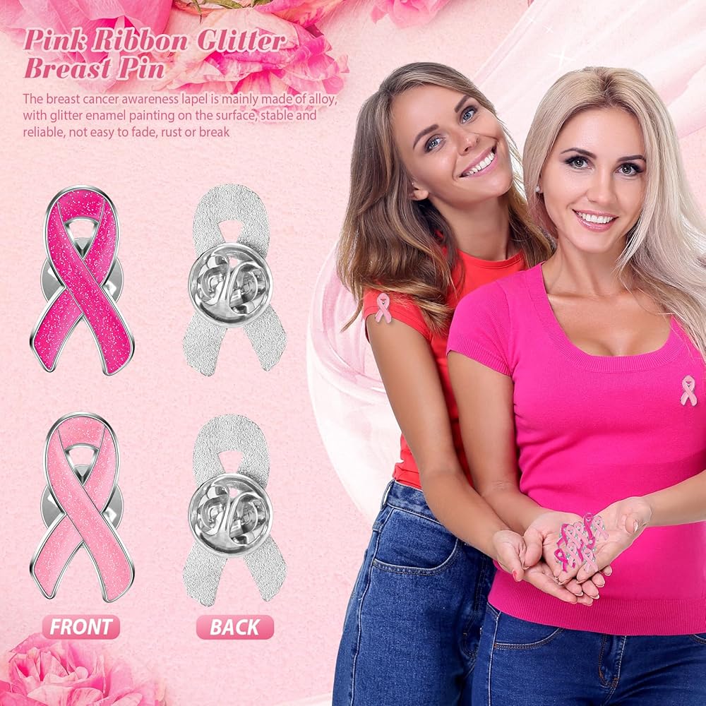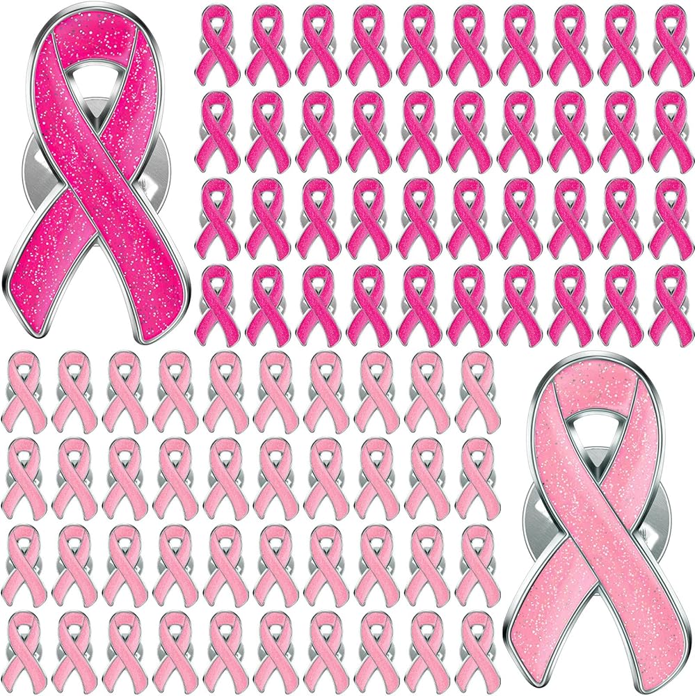 تصميم بشريط وردي: دبابيس سرطان الثدي الوردية مزينة بأشكال شريط وردي، رمز شهر التوعية بسرطان الثدي كل أكتوبر، مناسبة للجوائز، وحفلات الدعاية لسرطان الثدي، والمسيرات، والأنشطة الخيرية، والاحتفالات، وتجمعات العمل أو المدرسة، مما يوضح هذا الوعي للآخرين والتعبير عن موقفك