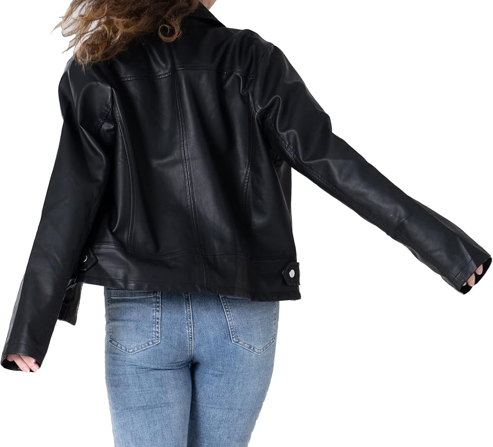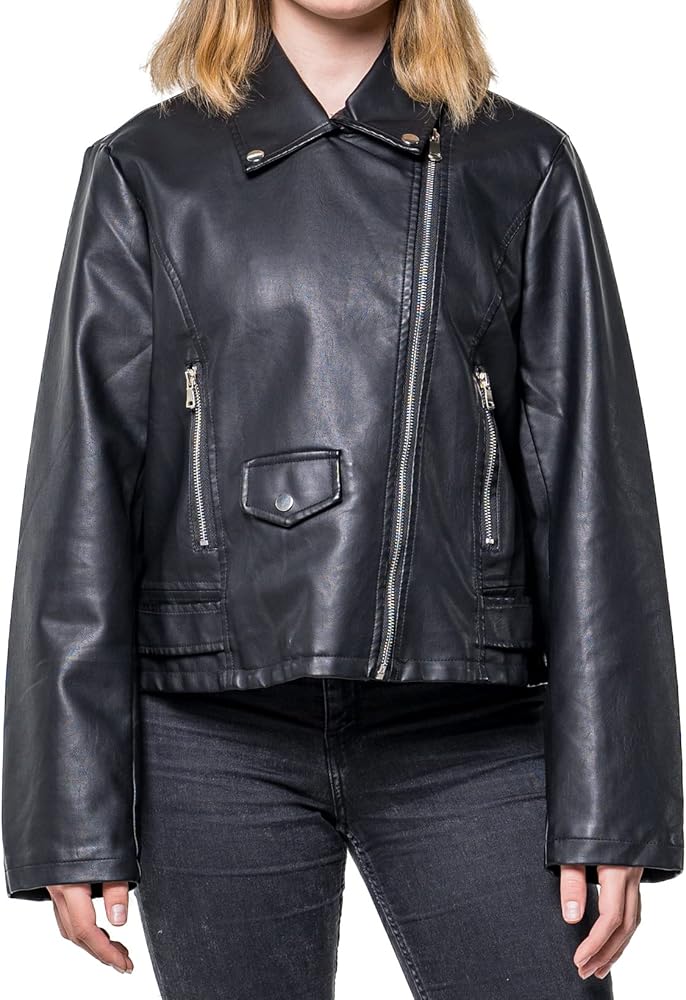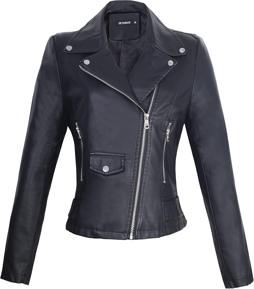 سترة نسائية عتيقة لراكبي الدراجات النارية من جلد البولي يوريثان بسحاب سترة بانك روك