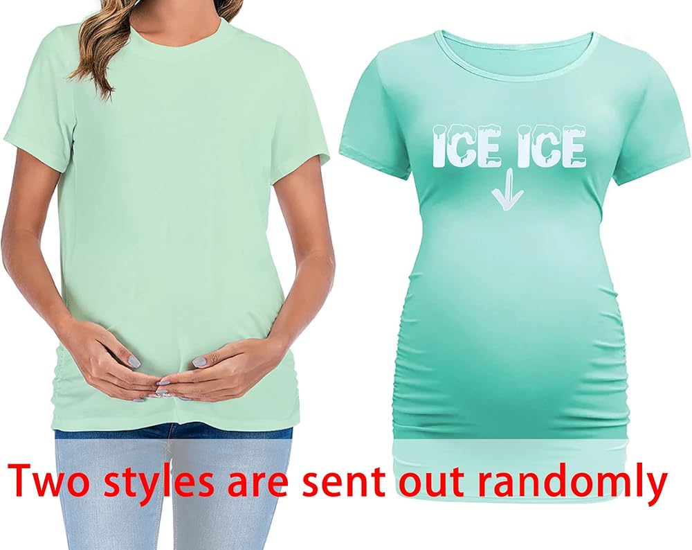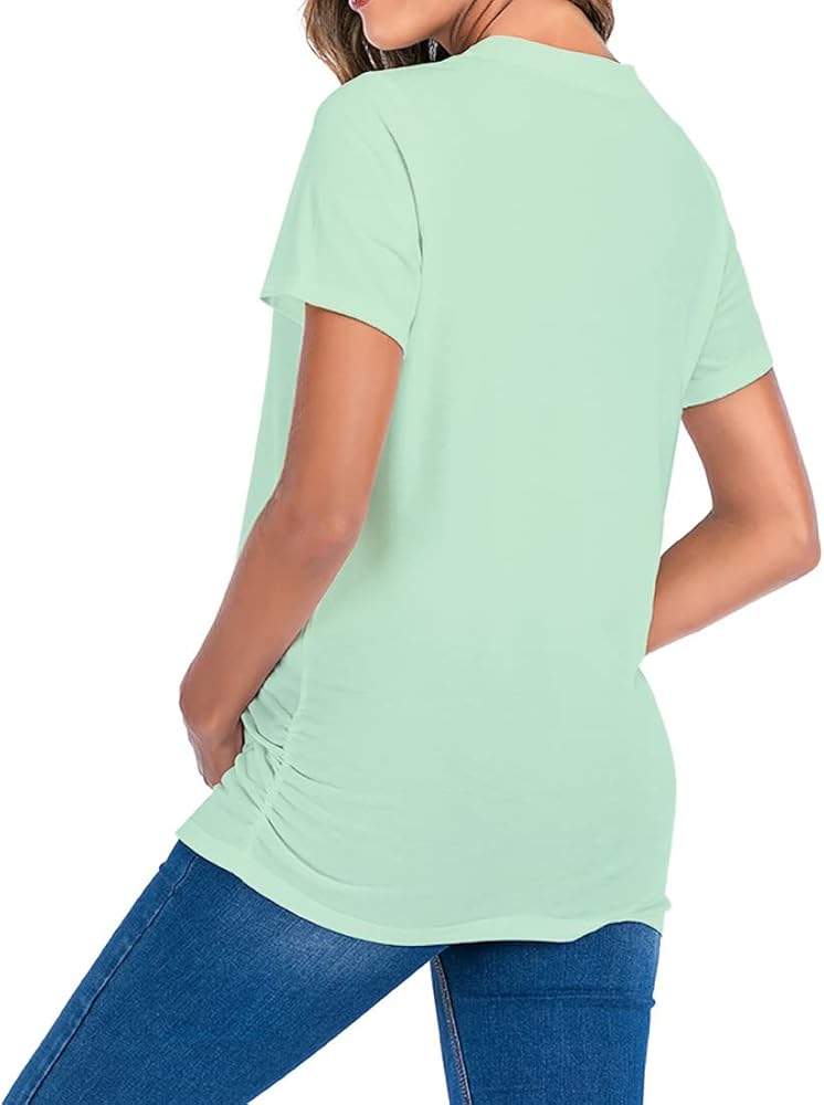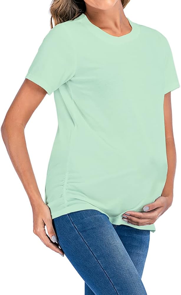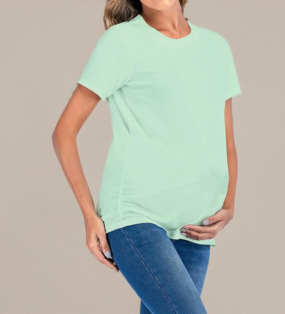 تي شيرت نسائي للحوامل بلوزات كلاسيكية مكشكشة جانبية تي شيرت للأمهات الحوامل ملابس حمل برقبة دائرية وأكمام قصيرة