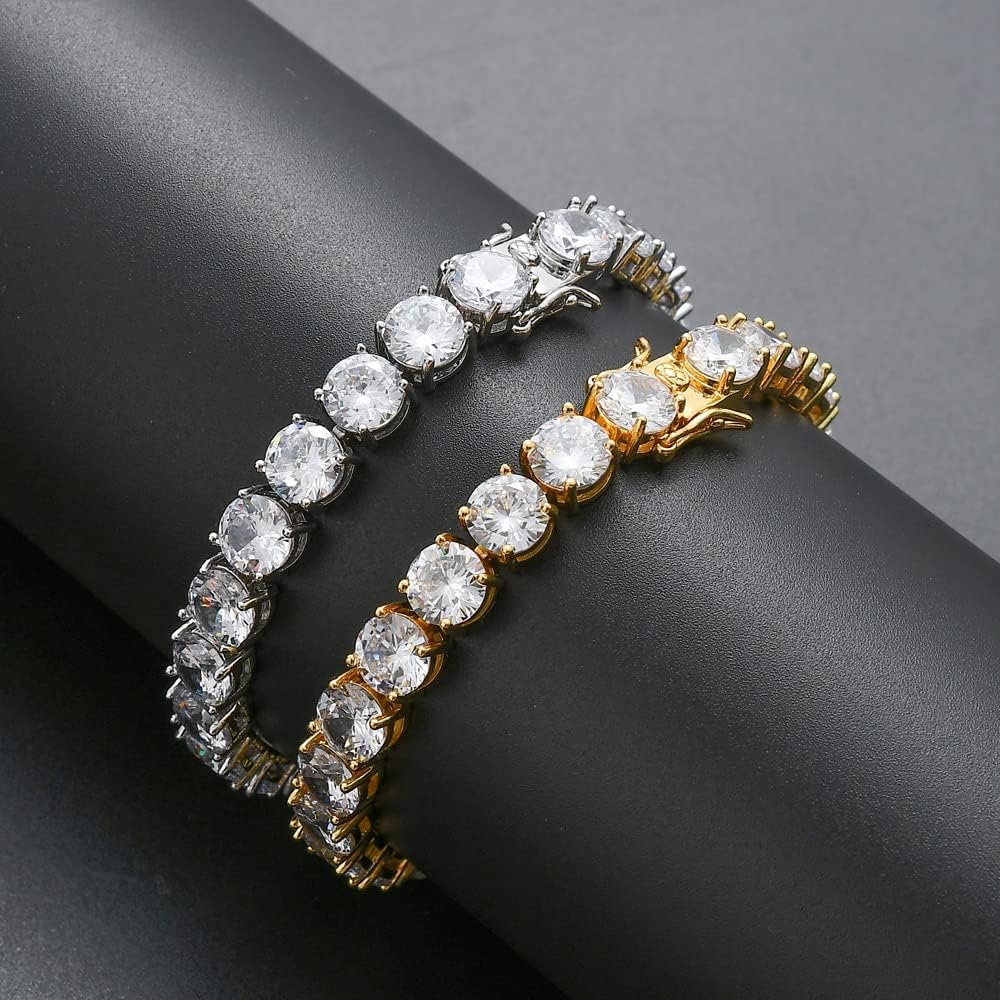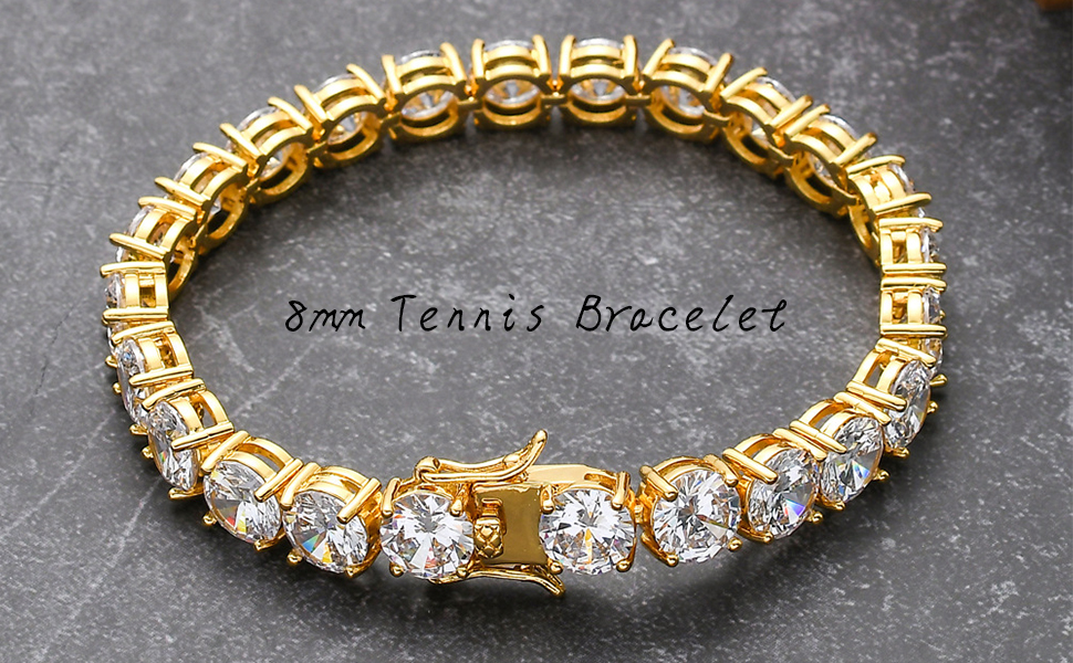【خامة عالية الجودة】هذا السوار مصنوع من الذهب عيار 14 قيراط والمويسانيت عالي الجودة 8 مم، جميع المعادن التي نستخدمها خالية من الرصاص والنيكل وسوار ذهبي لا يسبب الحساسية، مناسب جدًا للارتداء اليومي.