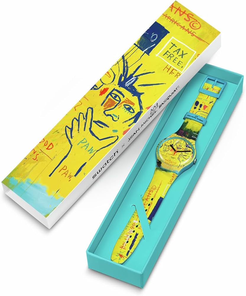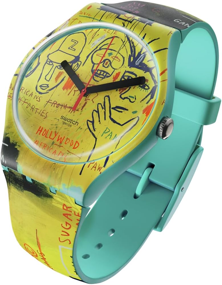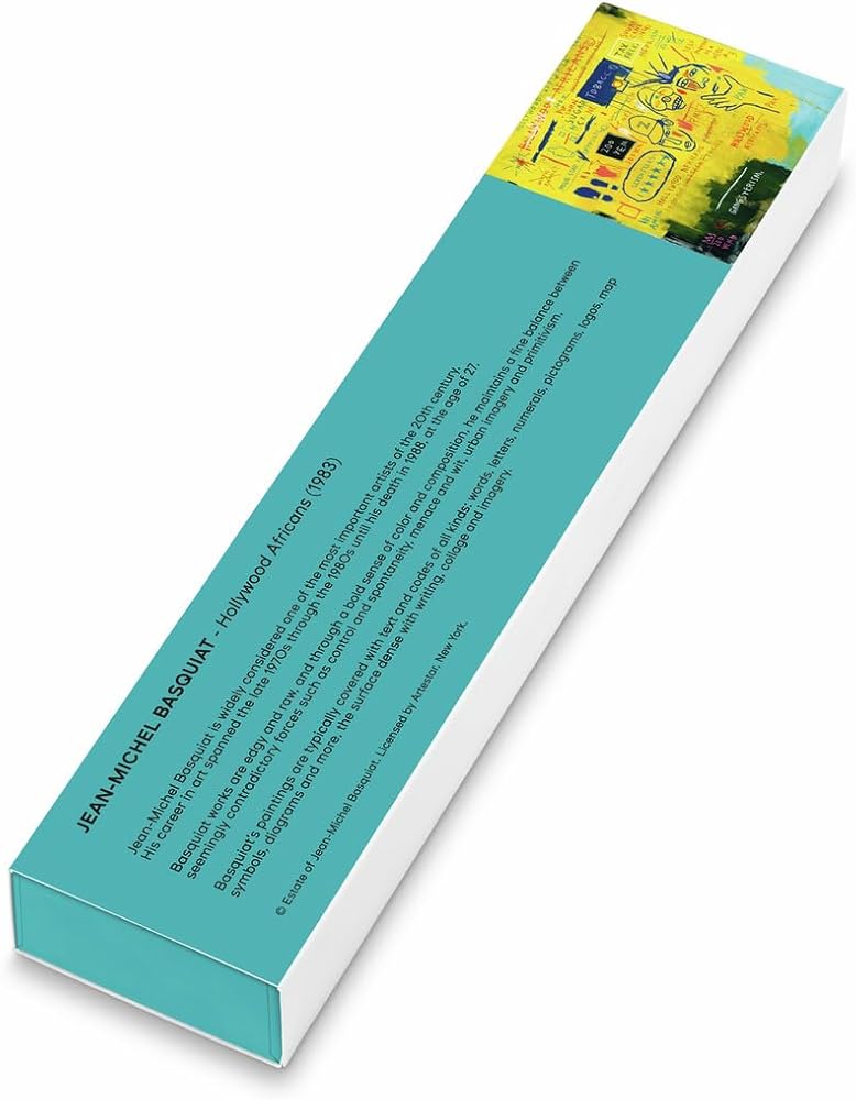 هوليوود أفريكانز من تأليف جان ميشيل باسكويت يعيد إنتاج أعمال جان ميشيل باسكيات التي طبعها فريق هوليوود الأفارقة باستمرار عبر المينا والهيكل والسوار. تتضمن الكلمات والوجوه المتقاطعة من اللوحة، يتناقض الجزء الأمامي مع الظهر الفيروزي اللامع والحلقة المطبوعة التي تحمل اسم الفنان.