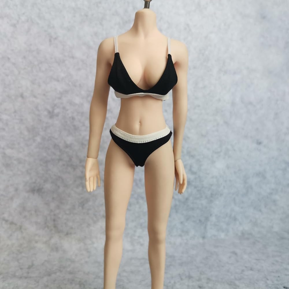 حمالة صدر بيكيني للسيدات مقاس 1/6 من SSbeauty M + ملابس داخلية لملابس الدمى النسائية مقاس 12 بوصة (أسود)