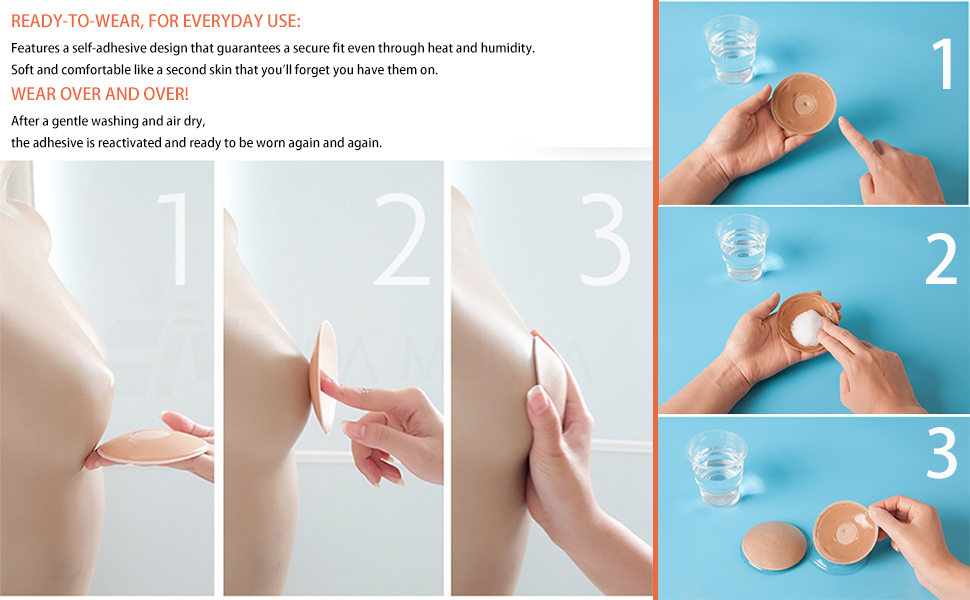 ◈ السلامة: سيليكون طبي عالي الجودة، مع مادة لاصقة مضادة للحساسية وصديقة للبشرة.