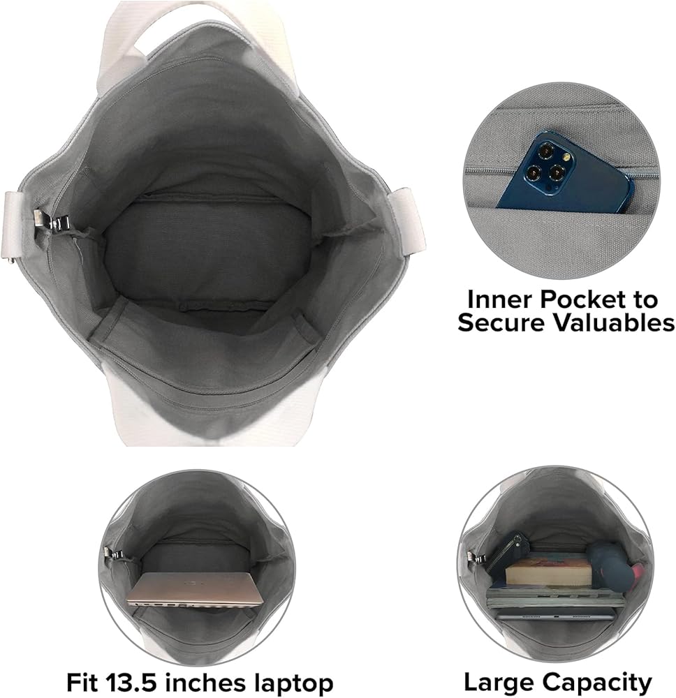 • 【المناسبة】حقيبة اليد القماشية المزودة بسحاب مثالية للتسوق، والمواعدة، والتخييم، والعمل، والحفلات، وصالة الألعاب الرياضية، والمدرسة، وما إلى ذلك. إنها واسعة وواسعة لتخزين أغراض الحياة اليومية، مثل الكمبيوتر المحمول مقاس 13.5 بوصة، والآيباد، والكتب، والهاتف الخلوي ، مكياج، محفظة، مخطط، مجلة A4، زجاجة ماء، مظلة.