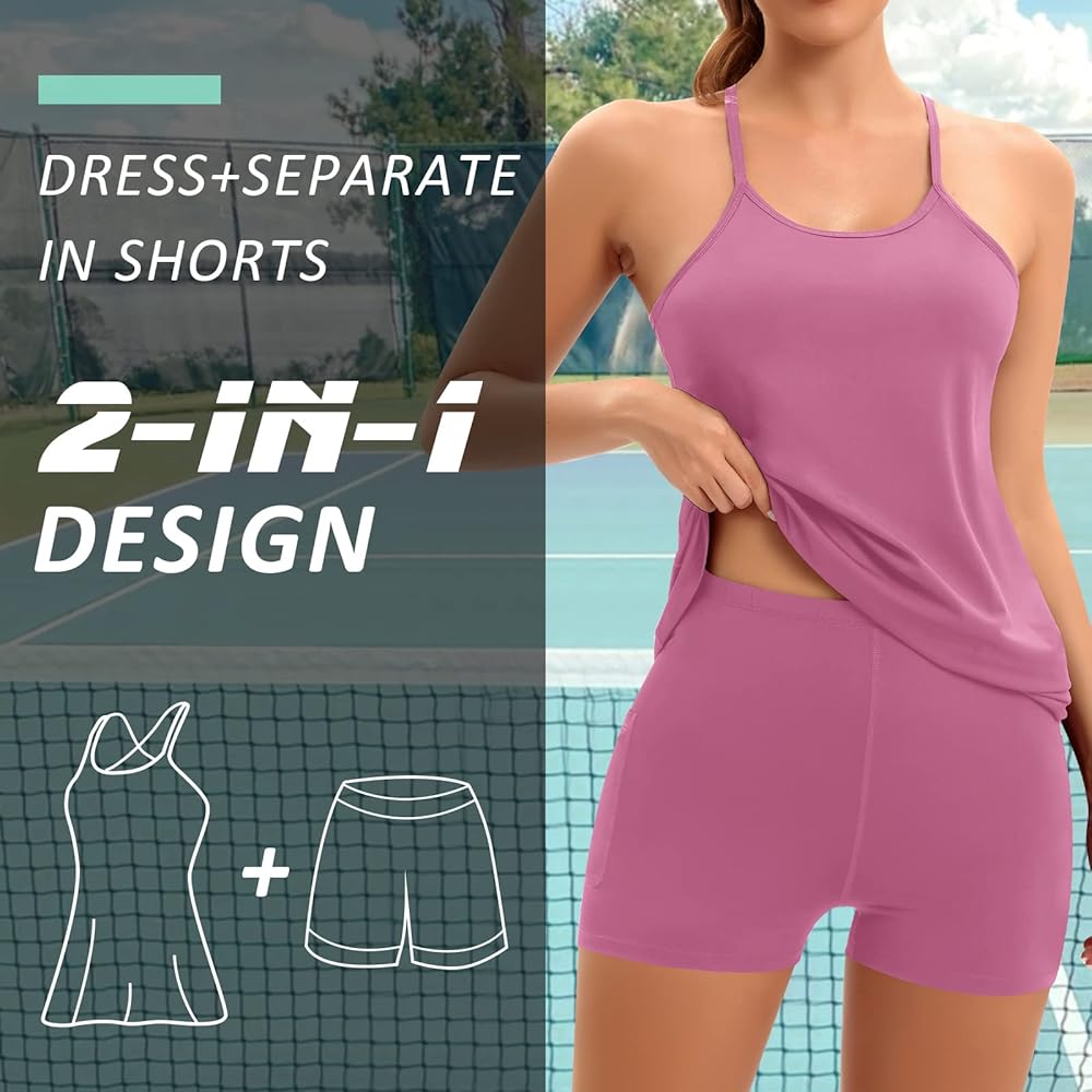 【فستان تنس مع شورت وجيوب منفصلة مدمجة】فساتين التنس للنساء مدمجة في شورت منفصل لتغطية كاملة وسهولة الحركة، ويتم إضافة فستان رياضي بجيبين جانبيين في السراويل الداخلية الرائعة للحفاظ على ضرورياتك في متناول اليد.