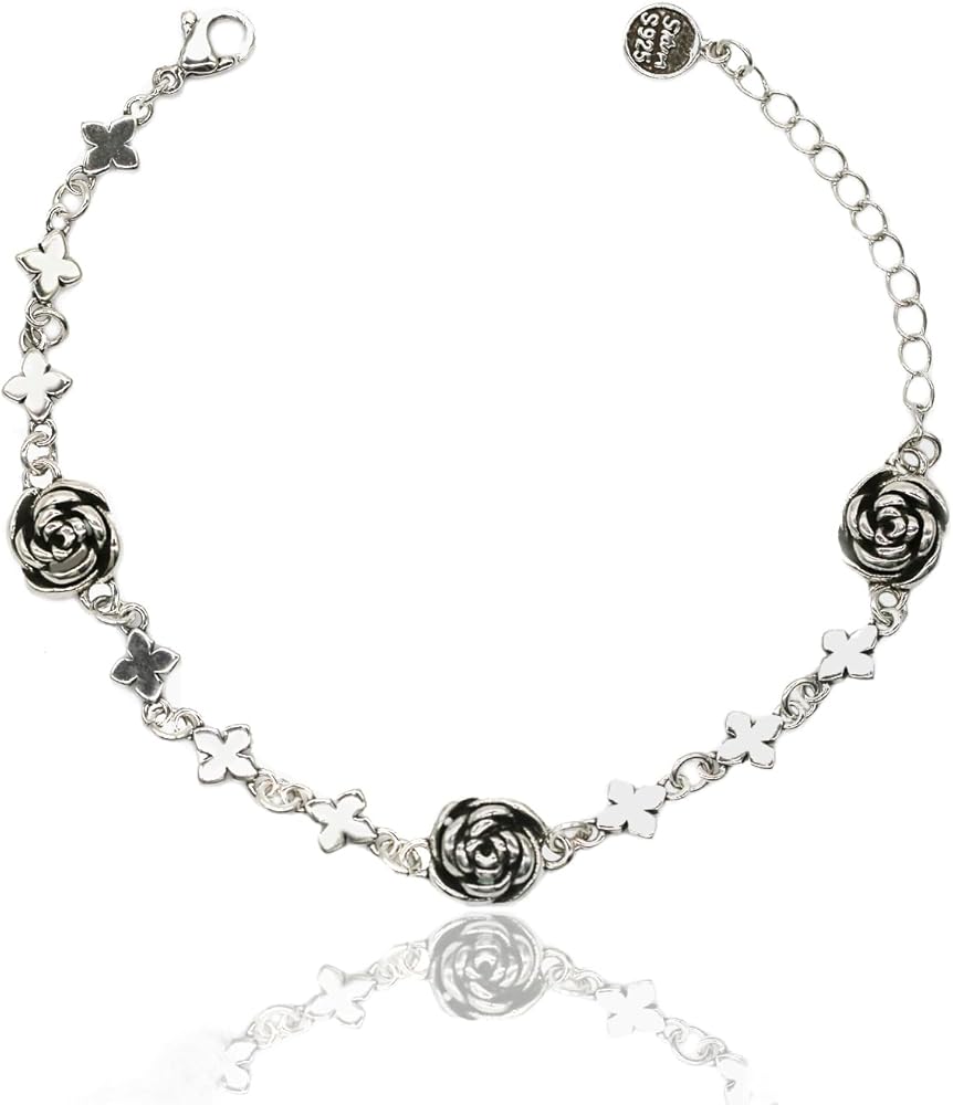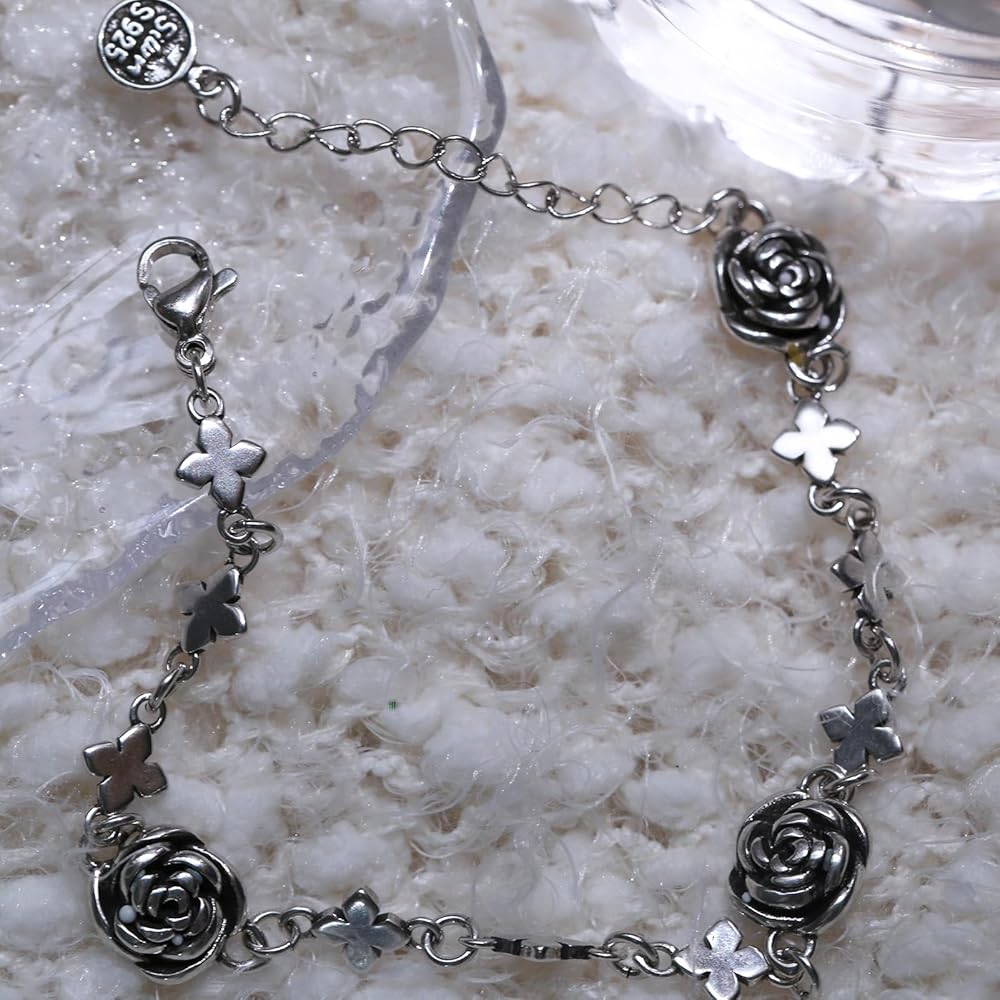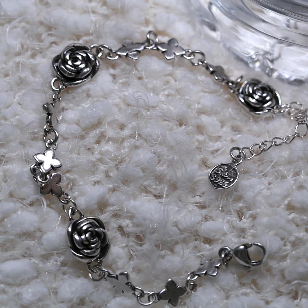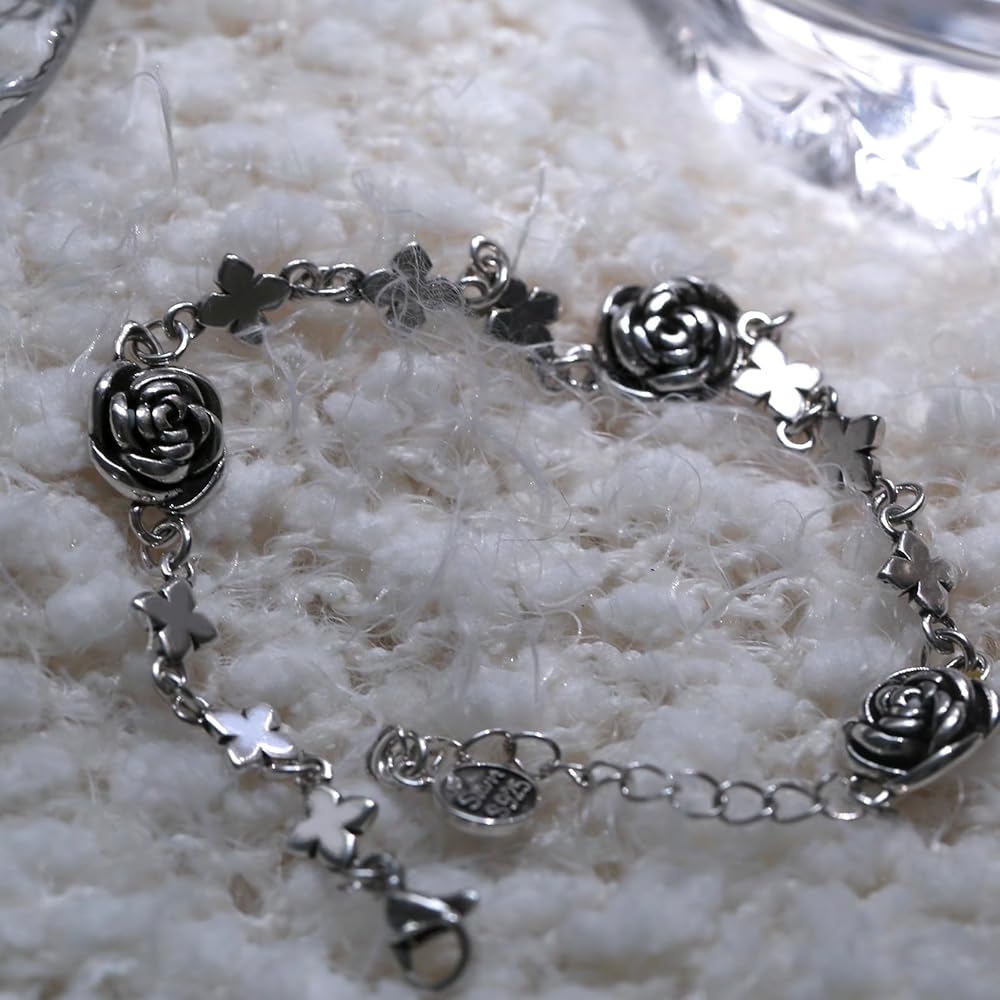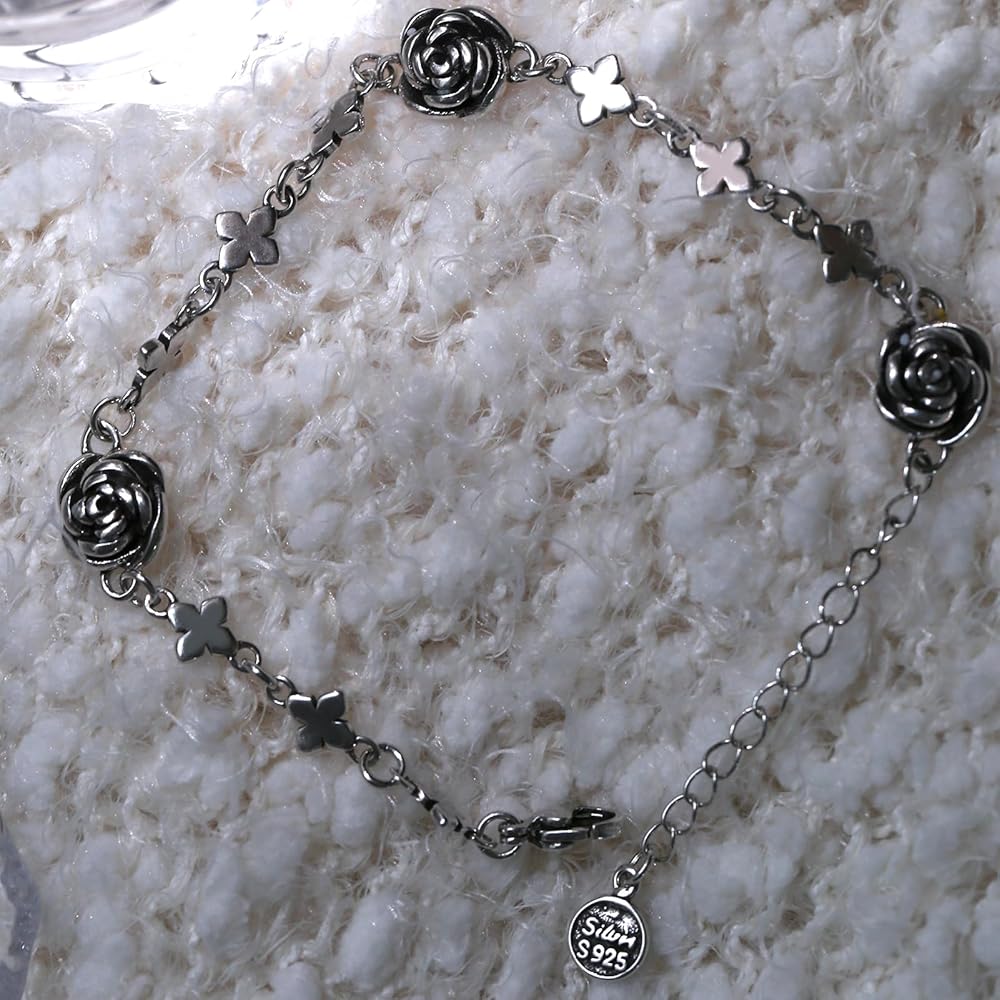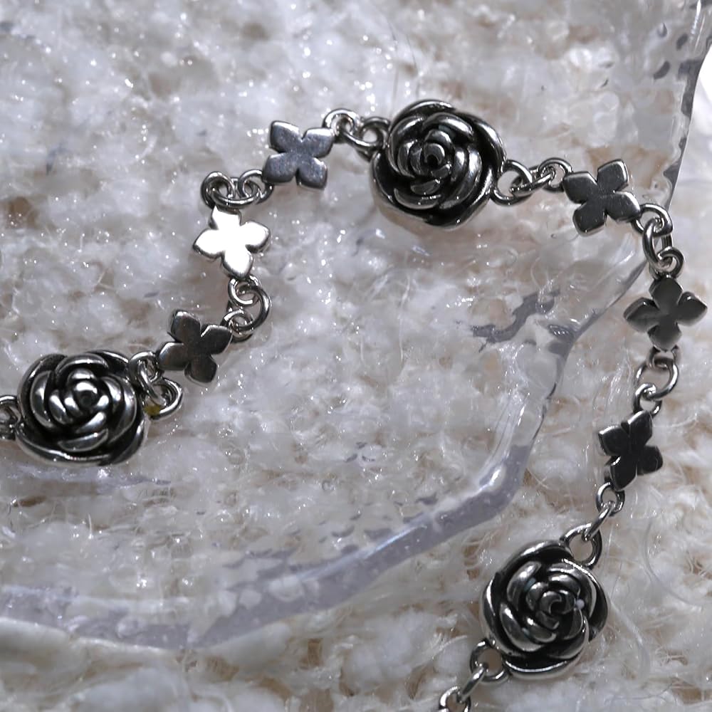 الوصف: يتميز السوار المصنوع من الفضة الإسترلينية بتصميم زهرة الورد العتيق المصنوع من الستانلس ستيل بقلادة رومانسية. إنها هدية رائعة لعيد الحب وعيد الأم ورأس السنة وعيد الشكر والكريسماس لصديقاتك وزوجتك وأمك وعائلتك. مع مواد عالية الجودة ونمط عصري، يمكنك ارتداؤها طوال اليوم في الحياة اليومية والعديد من المناسبات. يمكن أن تتماشى مع أنماط مختلفة من الملابس. تجعلك ساحرة طوال الوقت.