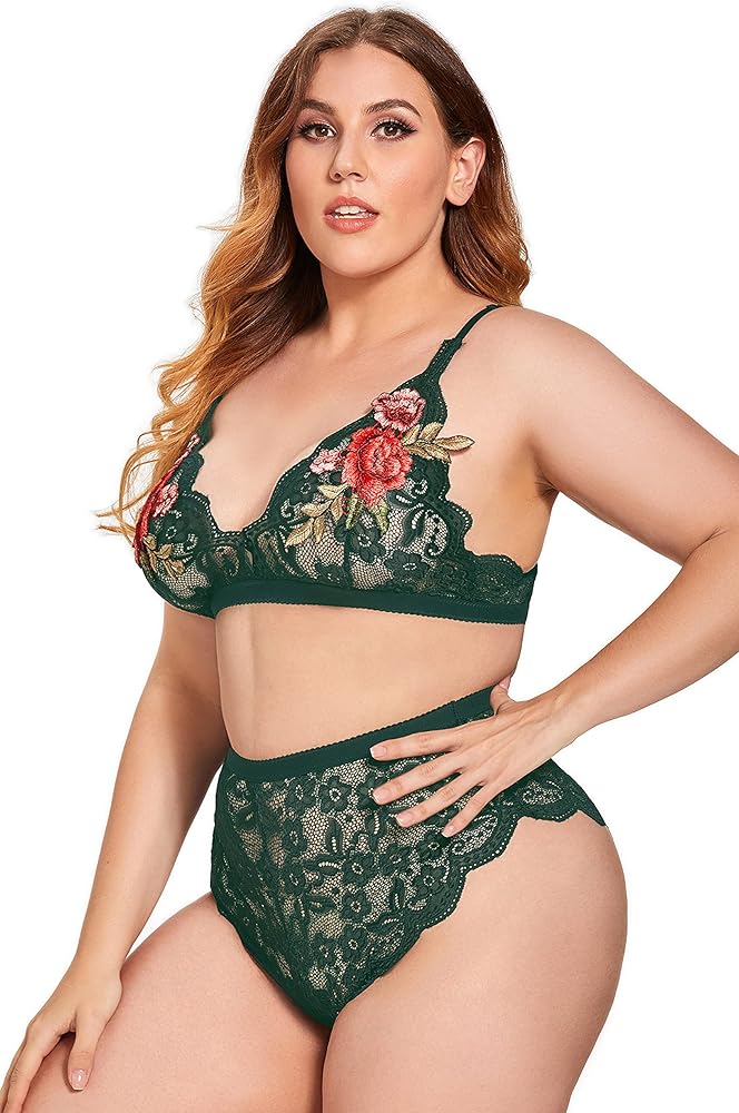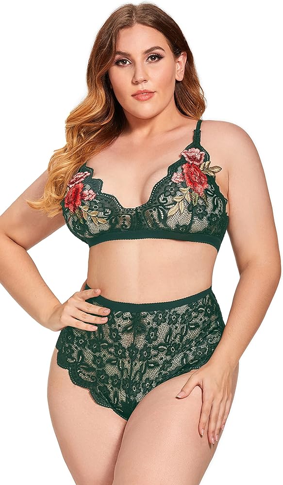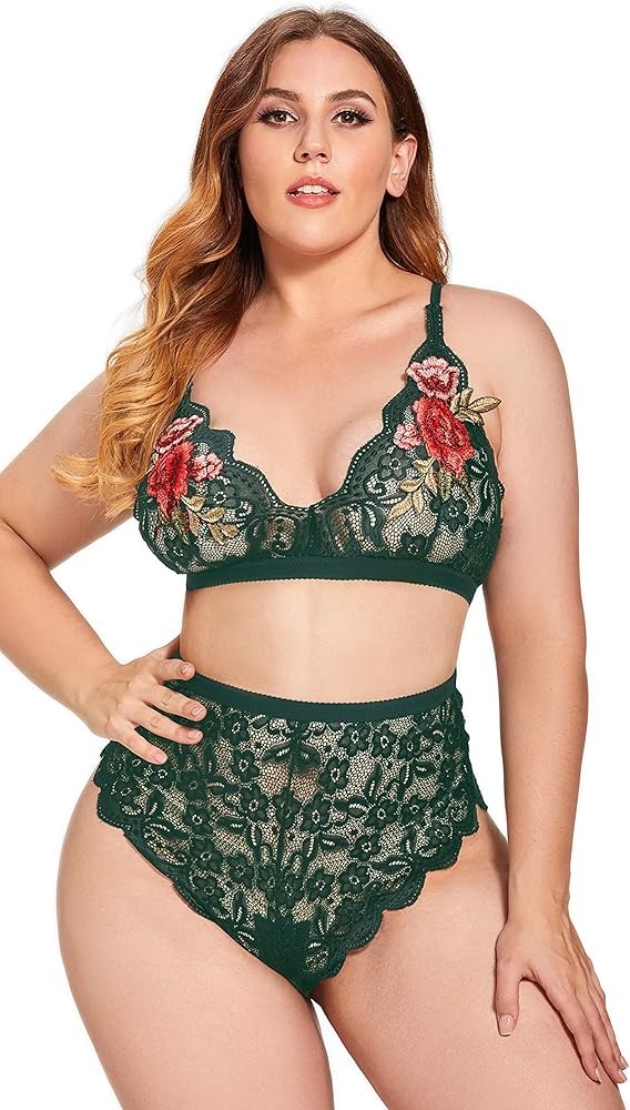 المزايا: مجموعة ملابس داخلية ناعمة بمقاس كبير تتميز بحمالة صدر من الدانتيل الشفاف مع زخرفة من الدانتيل على شكل صدفي، وزخرفة وردة حمراء على حمالة الصدر، وخط عنق على شكل حرف V، ومطاط أسفل الصدر، وأشرطة سباغيتي قابلة للتعديل، وإغلاق بخطاف وعين، ولباس داخلي عالي الخصر