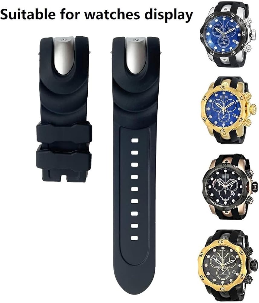 لأساور ساعة إنفيكتا، حزام ساعة مطاطي / حزام بديل للرجال مع مشبك من الفولاذ المقاوم للصدأ لمجموعة Invicta Reserve Collection Venom - أساور ساعة Invicta السوداء