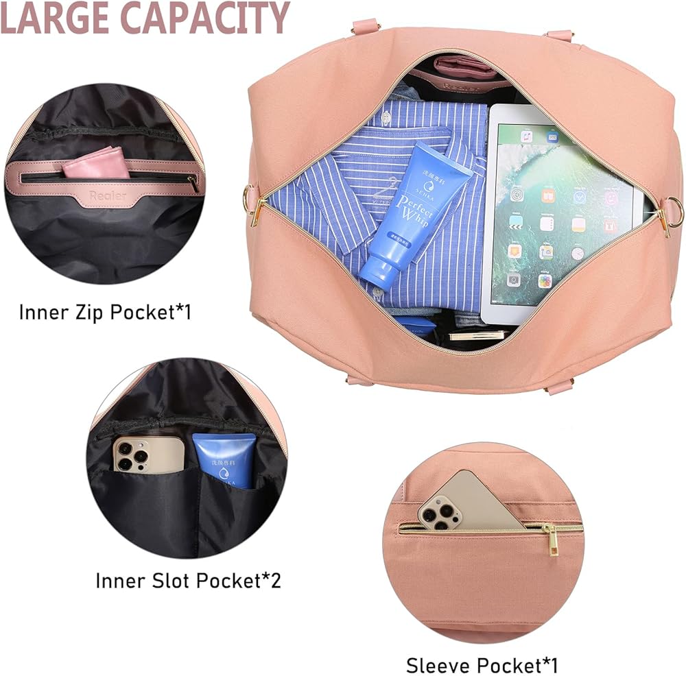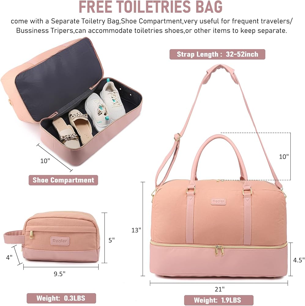 حقيبة WEADERER WEEDENDER للنساء ، حقيبة داكز على القماش مع كيس لقياس الزينة ، وحمل كبير على حقيبة ليلة وضحاها مع مقصورة الأحذية ، وأكياس مستشفى Duffel Duffel Bag المقاومة للماء للعمالة والتسليم