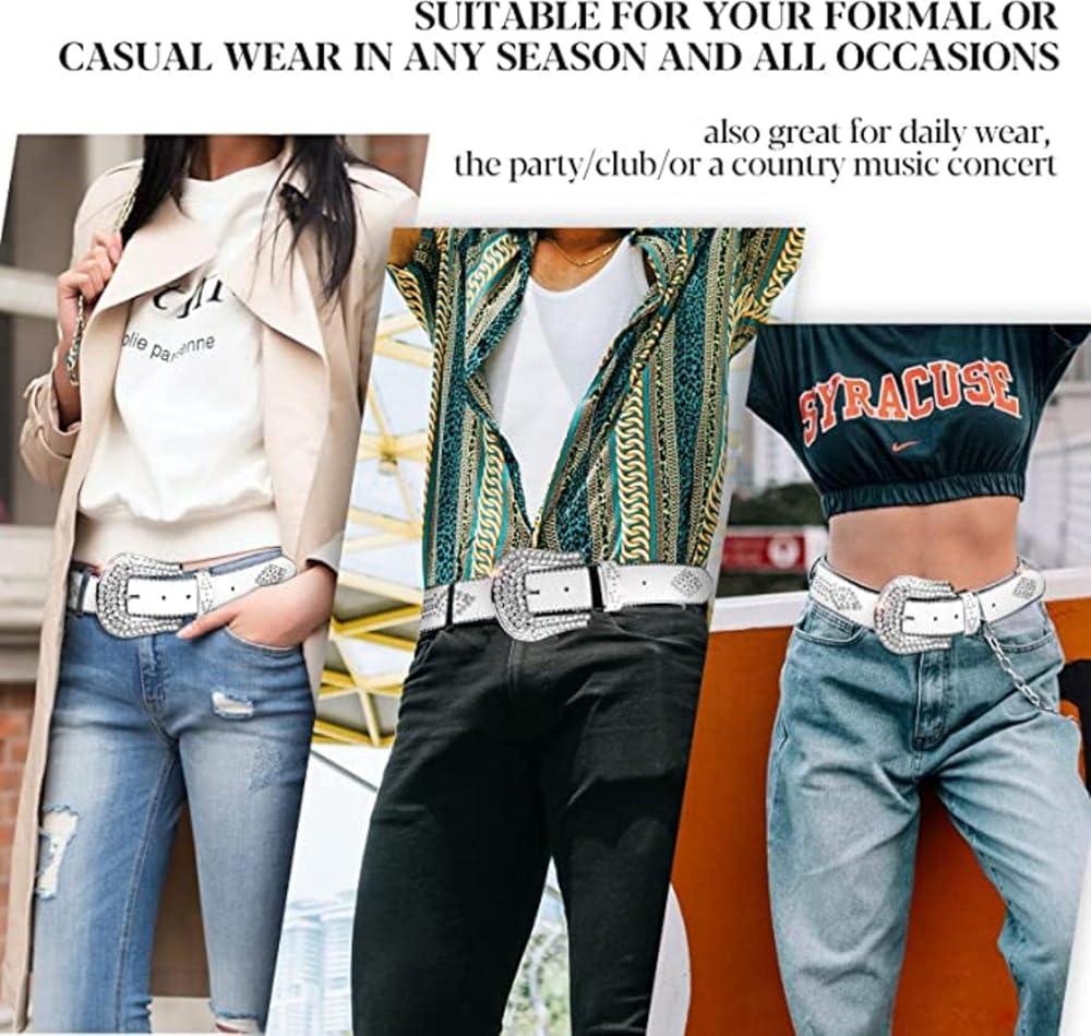 • ✅مادة متينة مطورة---الحزام الغربي المرصع بحجر الراين للنساء والرجال مصنوع من جلد البقر الحقيقي المطور. المواد النقية والحرفية المحددة تجعل أي منتج موثوقًا ومريحًا ومتينًا، مما يسمح لك بإظهار أنفاس نبيلة، دع دائمًا حسد الآخرين.