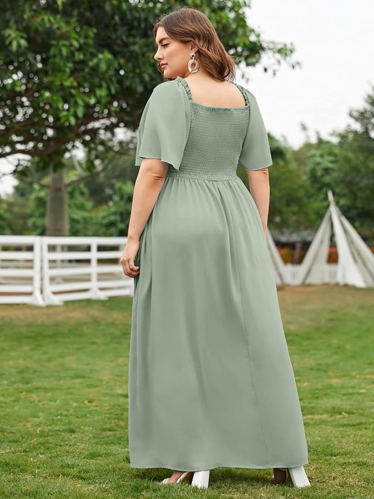 - زهور ديتسي، رقبة دائرية، أكمام قصيرة، خصر مكشكش، فستان خط، فستان متوسط الطول