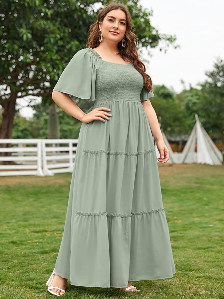 فستان Floerns نسائي قصير الأكمام بوهو مزين بالزهور على شكل حرف A فستان متوسط الطول