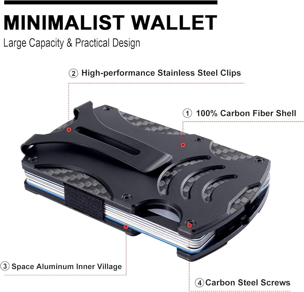 【جودة ممتازة】مشبك النقود الرجالي مصنوع من ألياف الكربون وسبائك الألومنيوم عالية الجودة، ومضاد للتآكل، ومتين وارتداء، ويضمن عمر خدمة طويل.