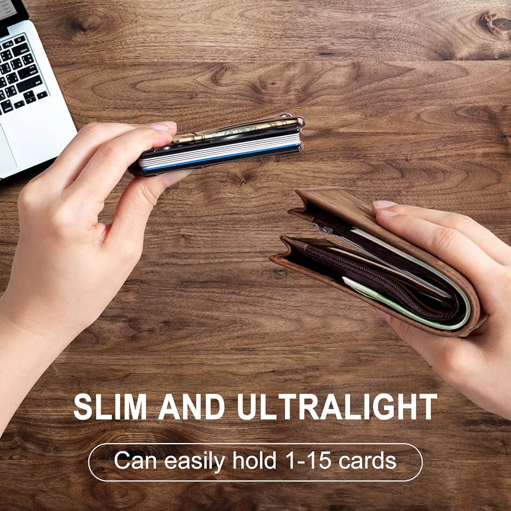 【سعة كبيرة】يمكن لمحفظة حامل بطاقات الائتمان المزودة بمشبك نقود للرجال أن تحمل 15 بطاقة و6 نقود أو فواتير للاستخدام اليومي. تساعدك الفتحة على شكل حرف C على إخراج البطاقات بسهولة وراحة.
