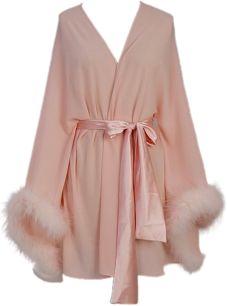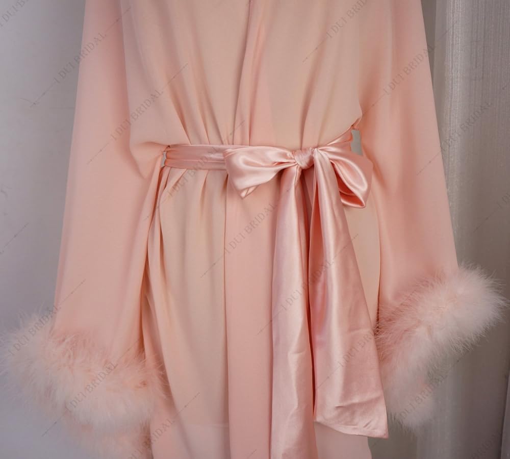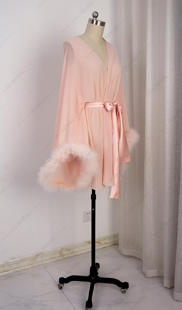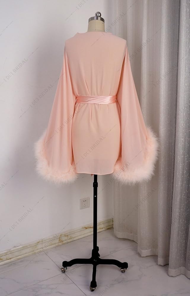 رداء زفاف قصير بأكمام ريش مع وشاح قصير مثير للثوب الليلي
