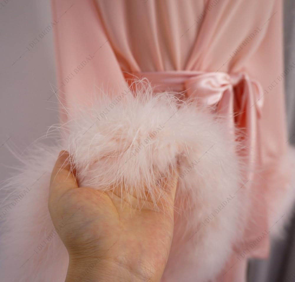 - المواد: الريش هو ريش الديك الرومي الطبيعي. الجسم الرئيسي مصنوع من الشيفون اللؤلؤي الناعم. الحزام من الساتان الحريري.