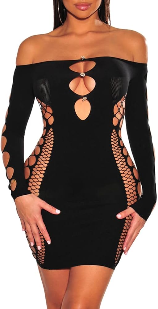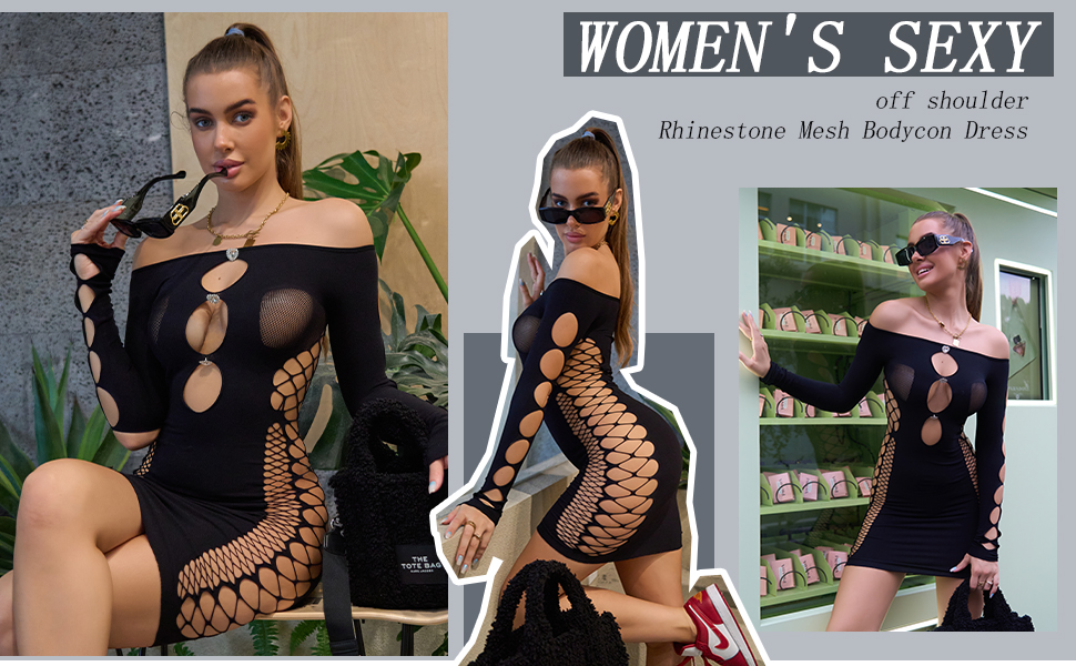 فستان ZileZile النسائي المثير بدون أكتاف شبكي مجوف للنادي قصير