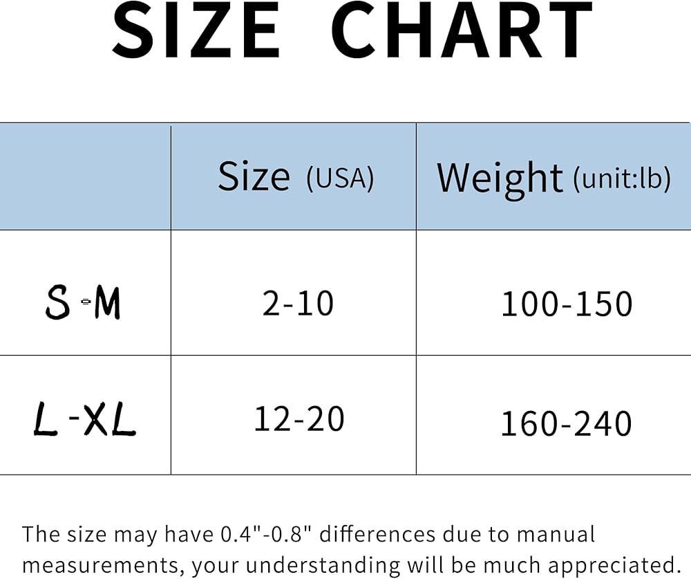 • المقاس: S-M=الولايات المتحدة 2-10، L-XL=الولايات المتحدة 12-20.